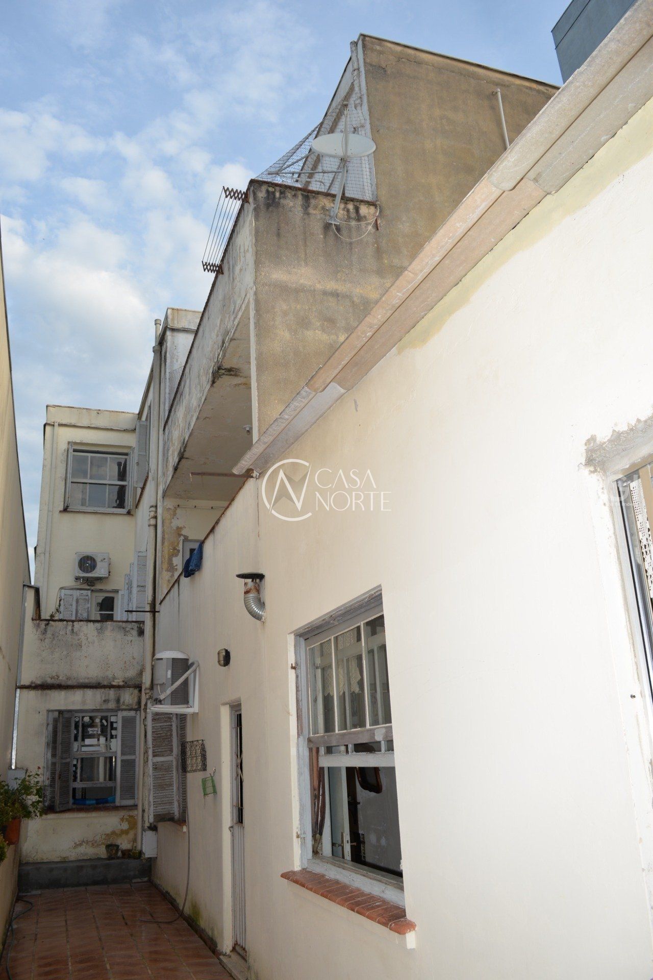 Ampla área tipo pátio nos fundos do prédio que tem acesso pelo apartamento localizado no primeiro andar.