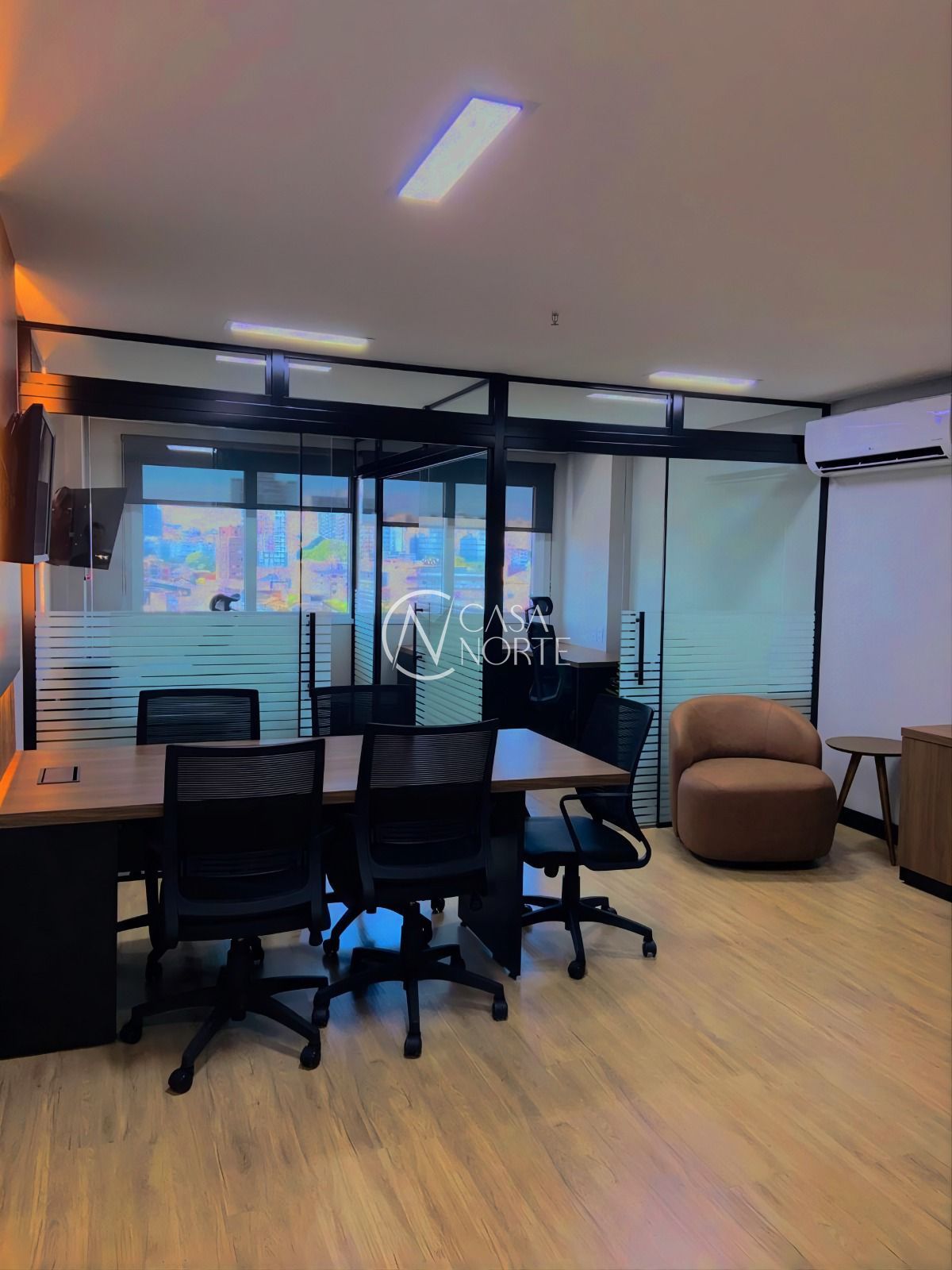 Com um ambiente moderno e aconchegante, esta sala comercial já está mobiliada, pronta para ser utilizada. Conta com 1 sala e 1 banheiro, proporcionando um espaço funcional e confortável para suas atividades comerciais.