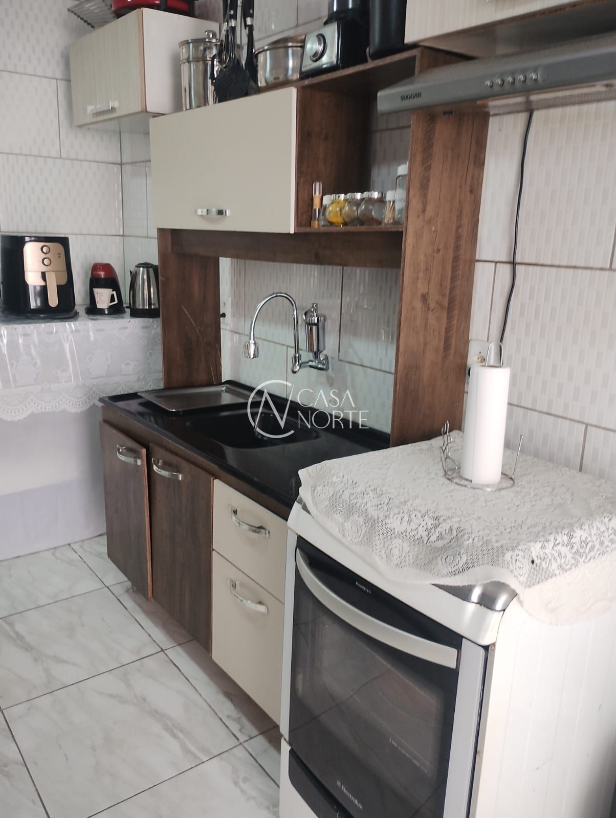 A cozinha, repleta de charme, é um convite à culinária, enquanto os armários embutidos oferecem praticidade e organização. O espaço conta ainda com uma churrasqueira, ideal para reunir amigos e familiares em momentos especiais.