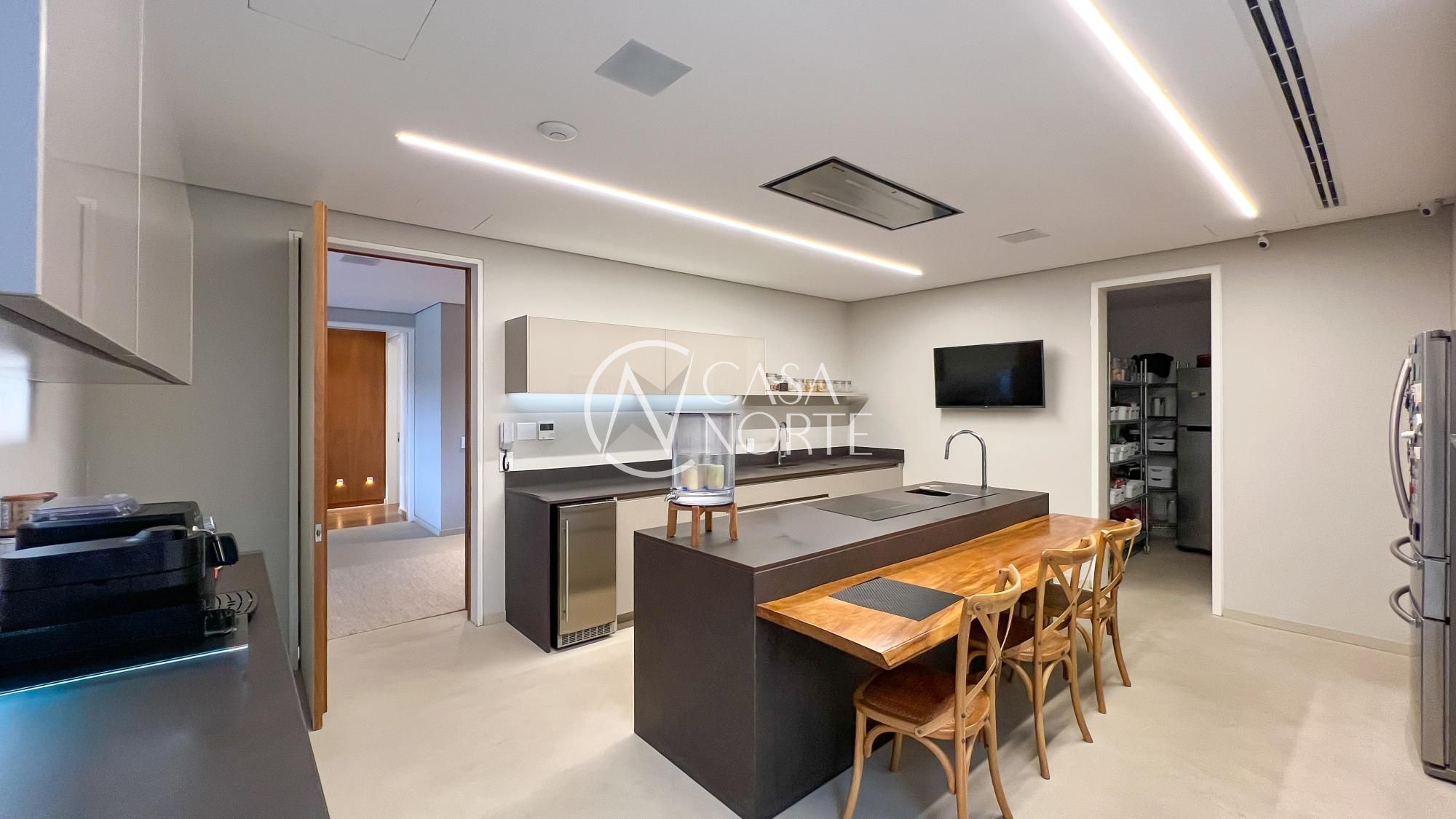 A área social é um espetáculo à parte: espaço gourmet integrado ao terraço e à piscina com raia aquecida de 25 metros, tudo voltado para a mata nativa — um cenário de privacidade e serenidade.