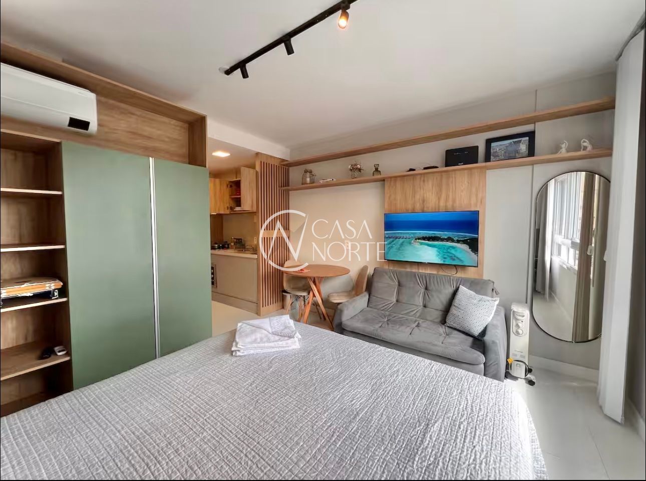 Possui sala / dormitório com ótima ventilação e iluminação natural, cozinha compacta e banheiro. O Apartamento esta completo, como nas fotos, inclusive com enxoval, possui despensa fechada, ao lado do apartamento.