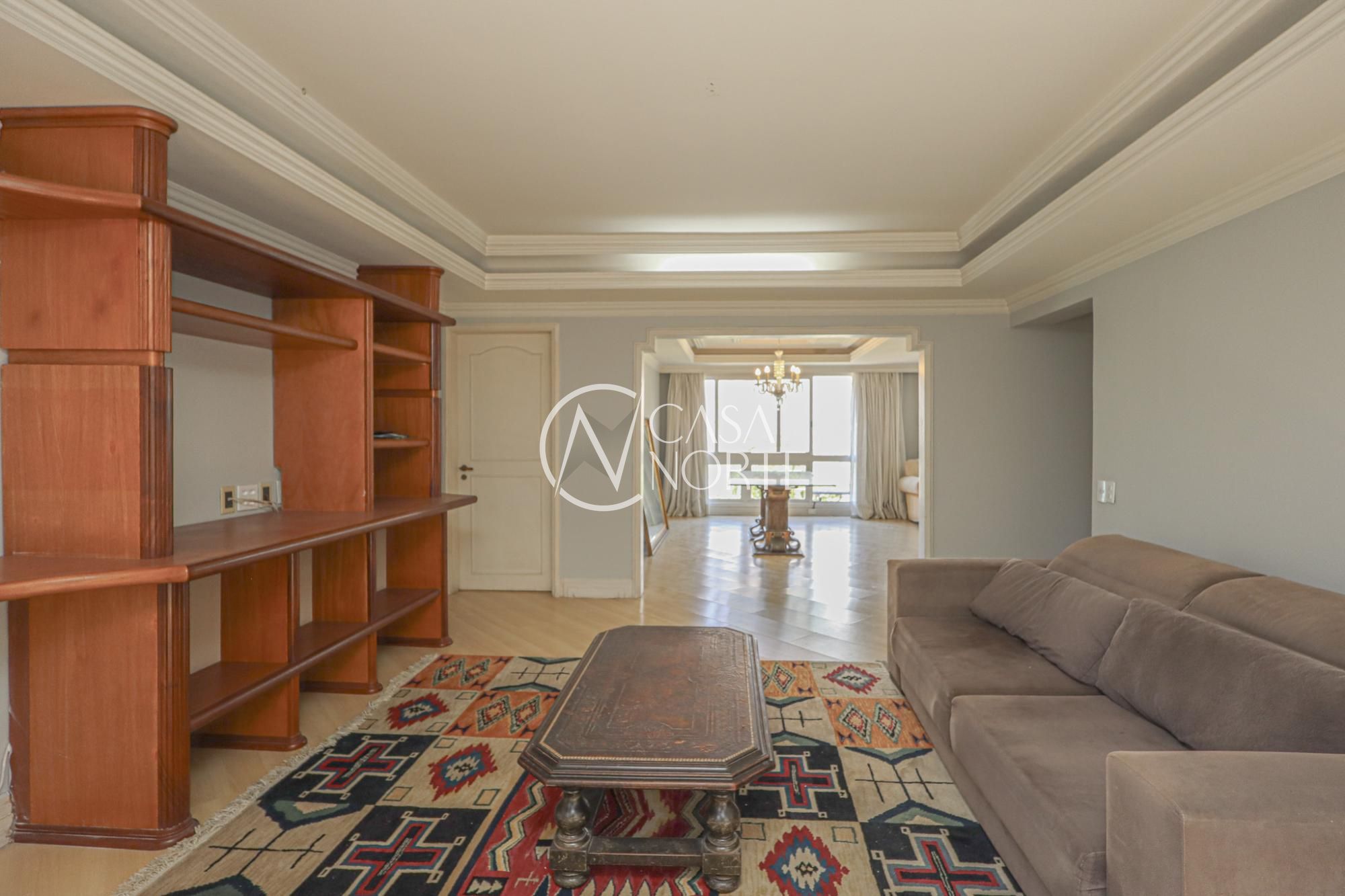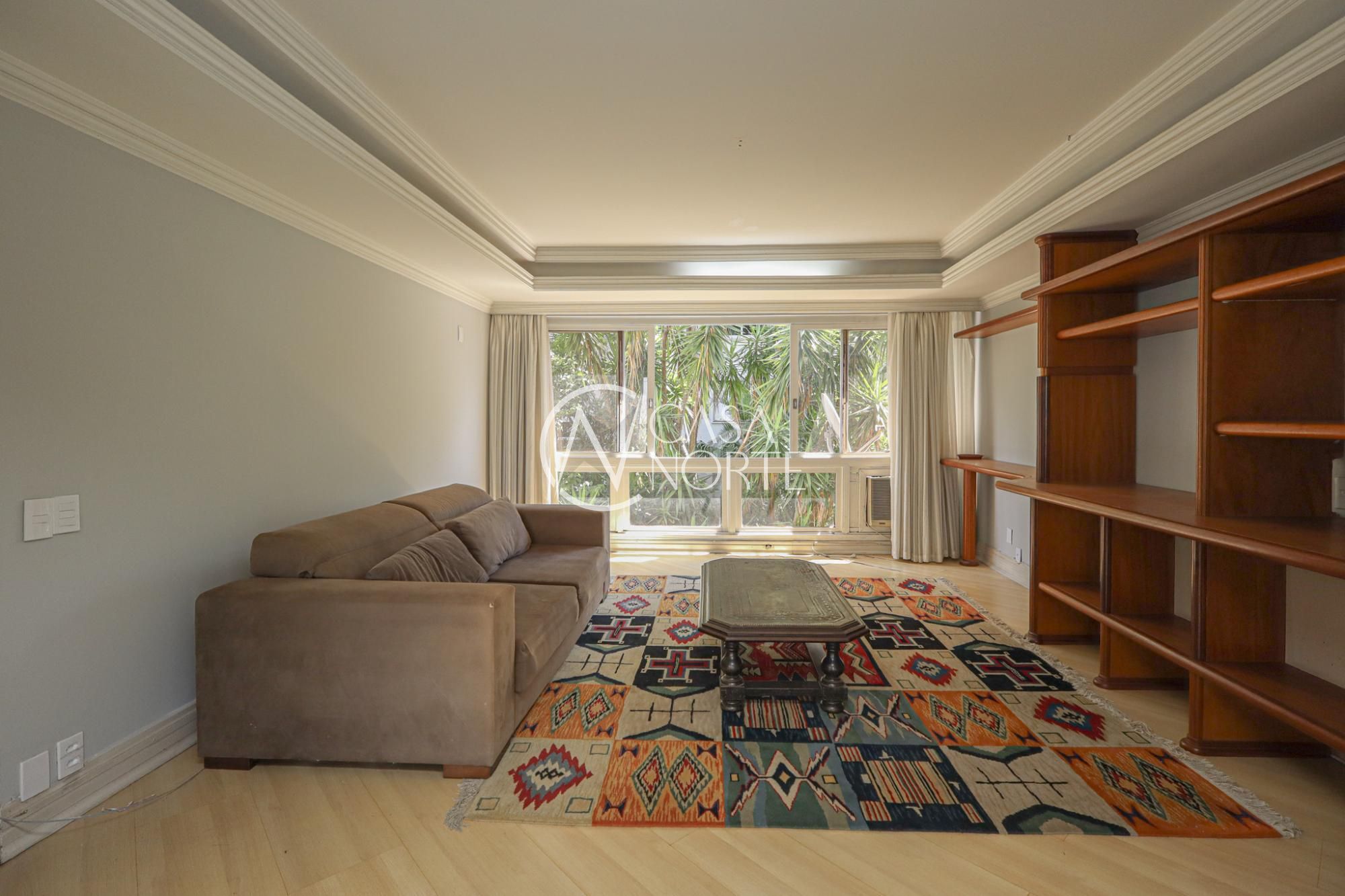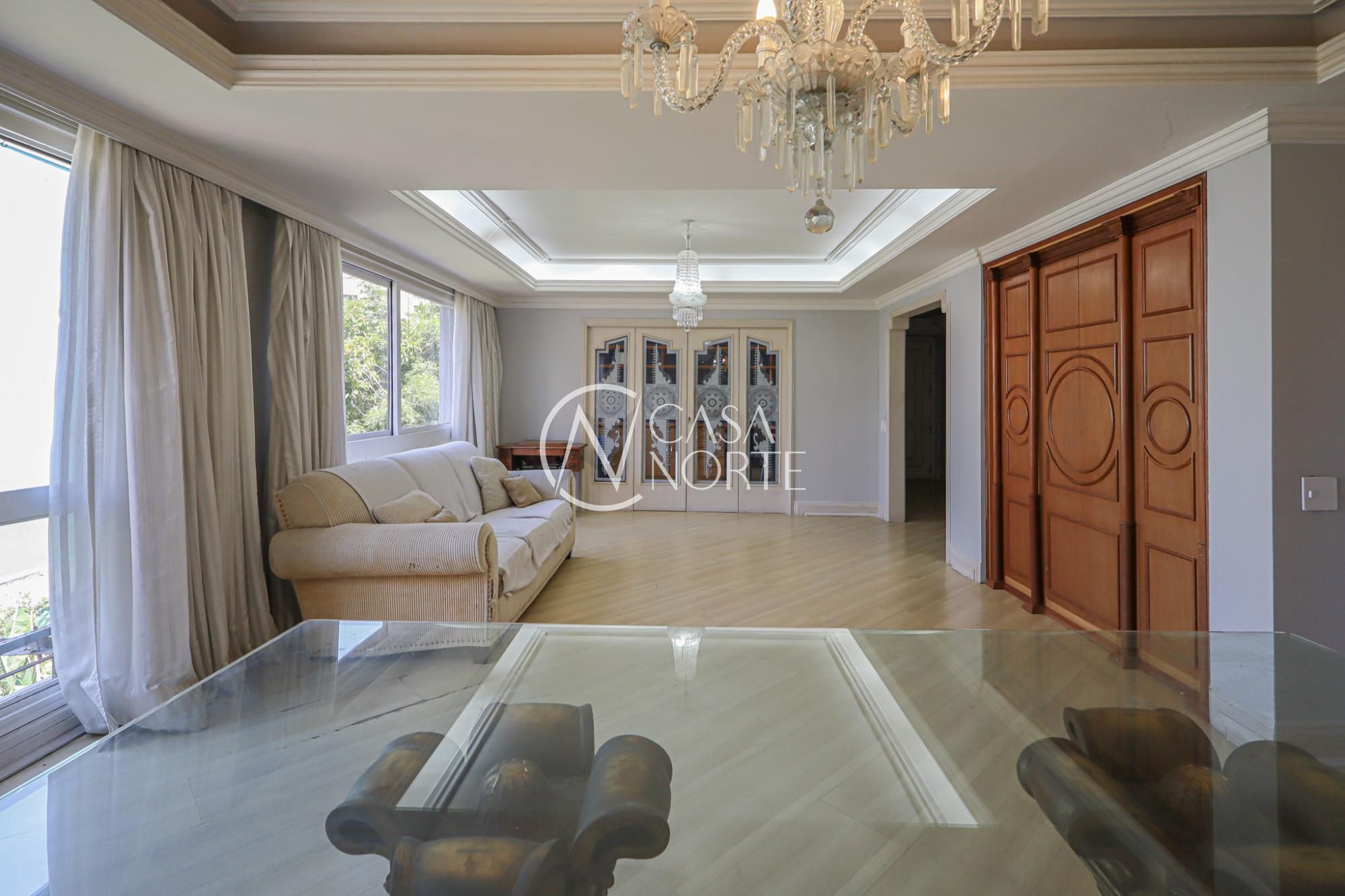 Apartamento semimobiliado com 224 m² de área privativa com 3 dormitórios sendo 1 suíte com closet e sacada, gabinete, lavabo, living amplo para 3 ambientes com sala de jantar e estar, cozinha montada com área de serviço individual com dependência de empregada completa. Possui 2 vagas de garagem individuais e cobertas.