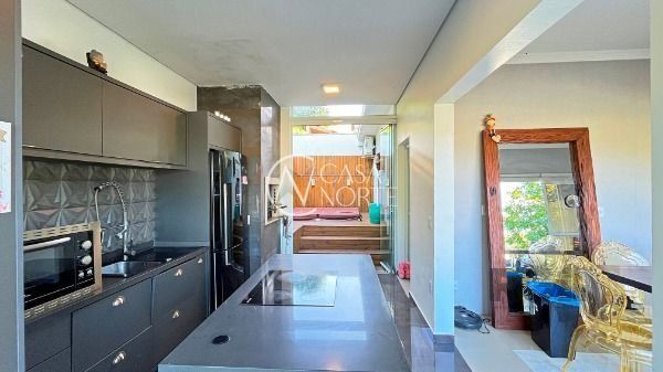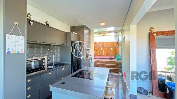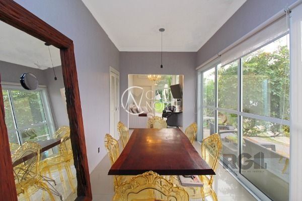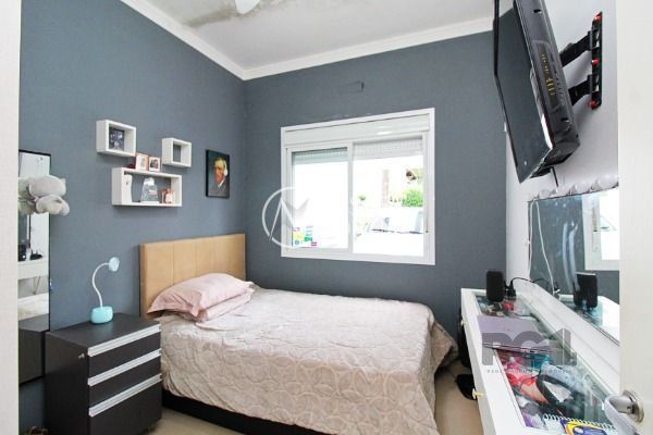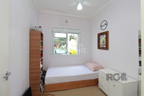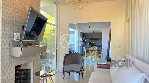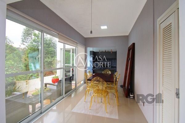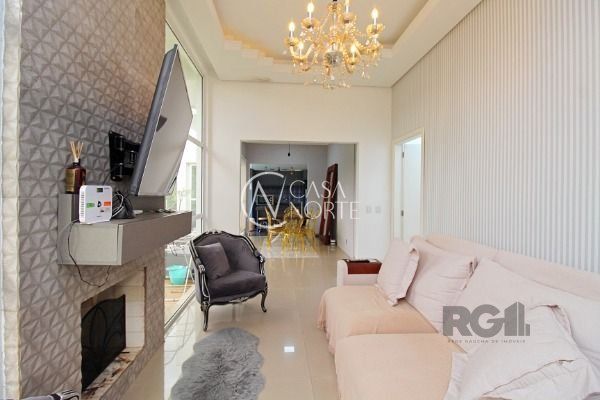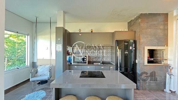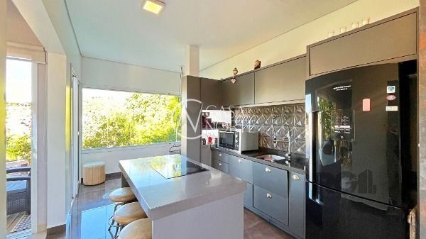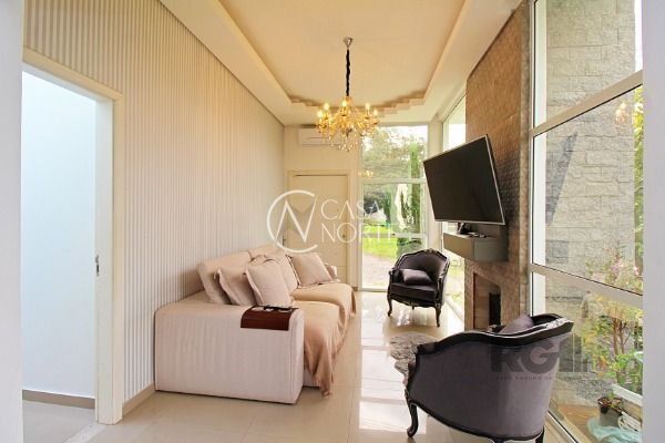Residência térrea em condomínio fechado, com 3 dormitórios, sendo 1 suíte, living 2 ambientes totalmente envidraçado com lareira, detalhes em gesso, cozinha americana com ilha, despensa, lavanderia, área de churrasqueira, avarandado na lateral com vista perene.piso em porcelanato, esquadrias de alumínio e 2 vagas de estacionamento. Agende sua visita!..