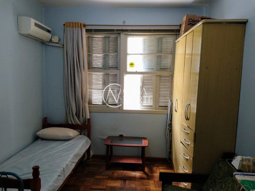 Possui 59m² privativos divididos em: living amplo para 2 ambientes, 2 dormitórios espaçosos, banheiro social, copa cozinha, área de serviço e banheiro auxiliar. Água quente na cozinha e banheiro social. Imóvel com peças amplas, ventilação de ambos os lados. Fica mobiliado, inclusive com 2 Splits instalados. Piso parquet em ótimo estado, aberturas novas. Estacionamento na região para locação de box.