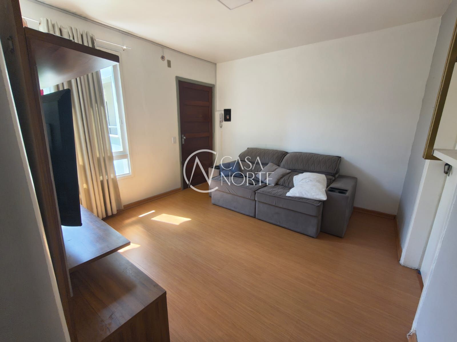 O imóvel conta com 1 dormitório, sala ampla e bem iluminada, cozinha funcional, lavanderia separada e banheiro social. Possui piso laminado, proporcionando conforto e um ambiente mais aconchegante.