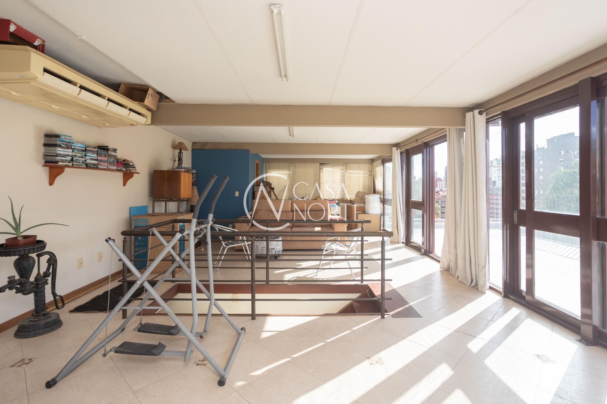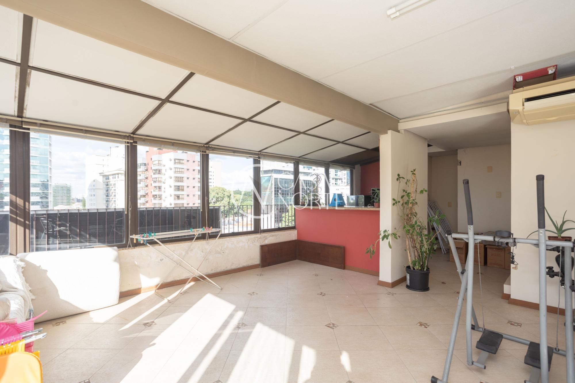 Essa cobertura está na estrategicamente localizada na esquina da Nilo Peçanha com Carlos Gomes. Tem vista panorâmica permanente da cidade e situada em região com acesso facilitado para todas as regiões da cidade. No primeiro pavimento estão área social e privativa com possibilidade de isolamento ou integração através de portas entre as dependências. No segundo pavimento um ampla área ensolarada contendo churrasqueira e terraço.