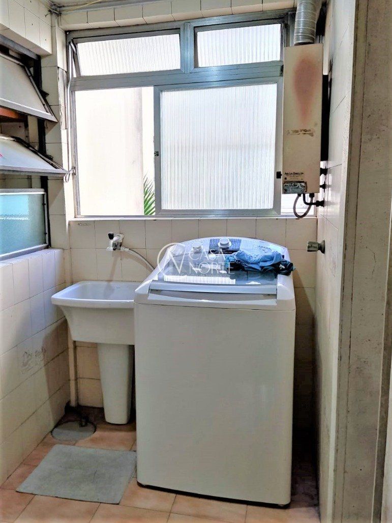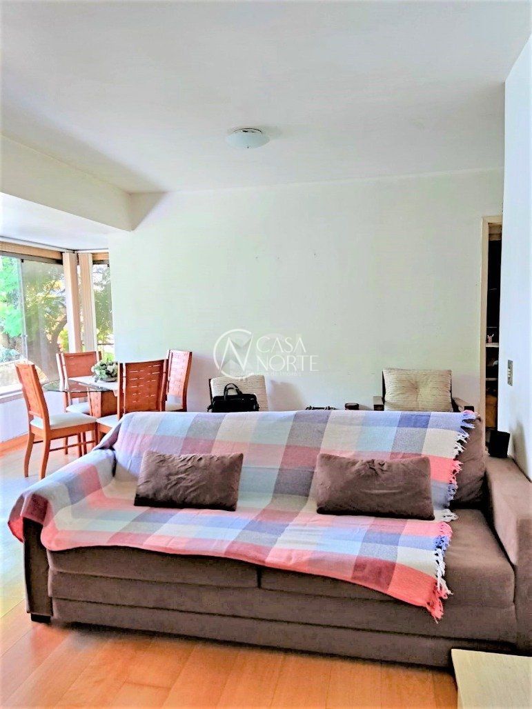 Apartamento 2 dormitórios semimobiliado, living 2 ambientes com lareira, cozinha e área de serviço, banheiro social, sacada e churrasqueira. Possui gás central, elevador, porteiro eletrônico, bicicletário e dependência completa de empregada.