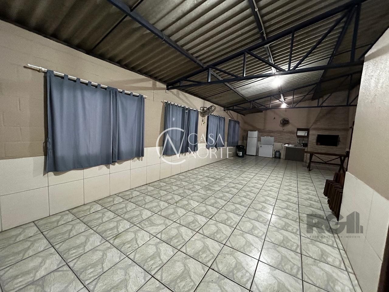 Possui dois dormitórios, living de estar e jantar, cozinha, área de serviço, e banheiro social.