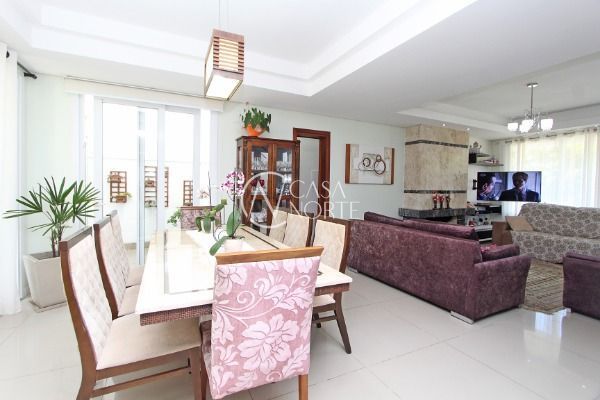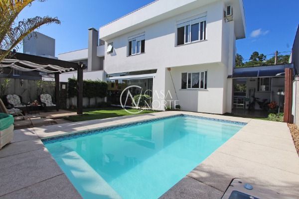 Linda casa no Condomínio Mirante do Lago com 5 dormitórios, sendo 4 suítes, uma no andar térreo, living com 3 ambientes com lareira, sacada, sala de jantar, lavabo, cozinha americana , área de serviço , espaço gourmet com churrasqueira. Com 2 vagas de garagem e piscina.