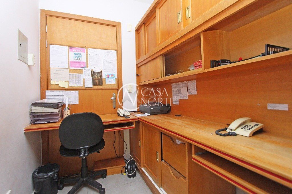 3 salas comerciais UNIFICADAS, com 86m² privativos, 3 banheiros (1 transformado em copa), sala de recepção, sala de reunião, sala central com 11 estações, diretoria, departamento pessoal, depósito/almoxarifado e 2 vagas de garagem cobertas e escrituradas. De fundos, totalmente silencioso e com ótima posição solar. Possibilidade de desmembramento, com entradas e documentação individuais. Condomínio com portaria (em horário comercial), elevador e salão de festas com terraço. EXCELENTE localização no bairro Menino Deus, a poucos minutos do Hospital Mãe de Deus e Zaffari Menino Deus, com todos os recursos nas proximidades.