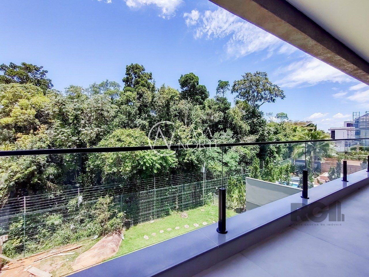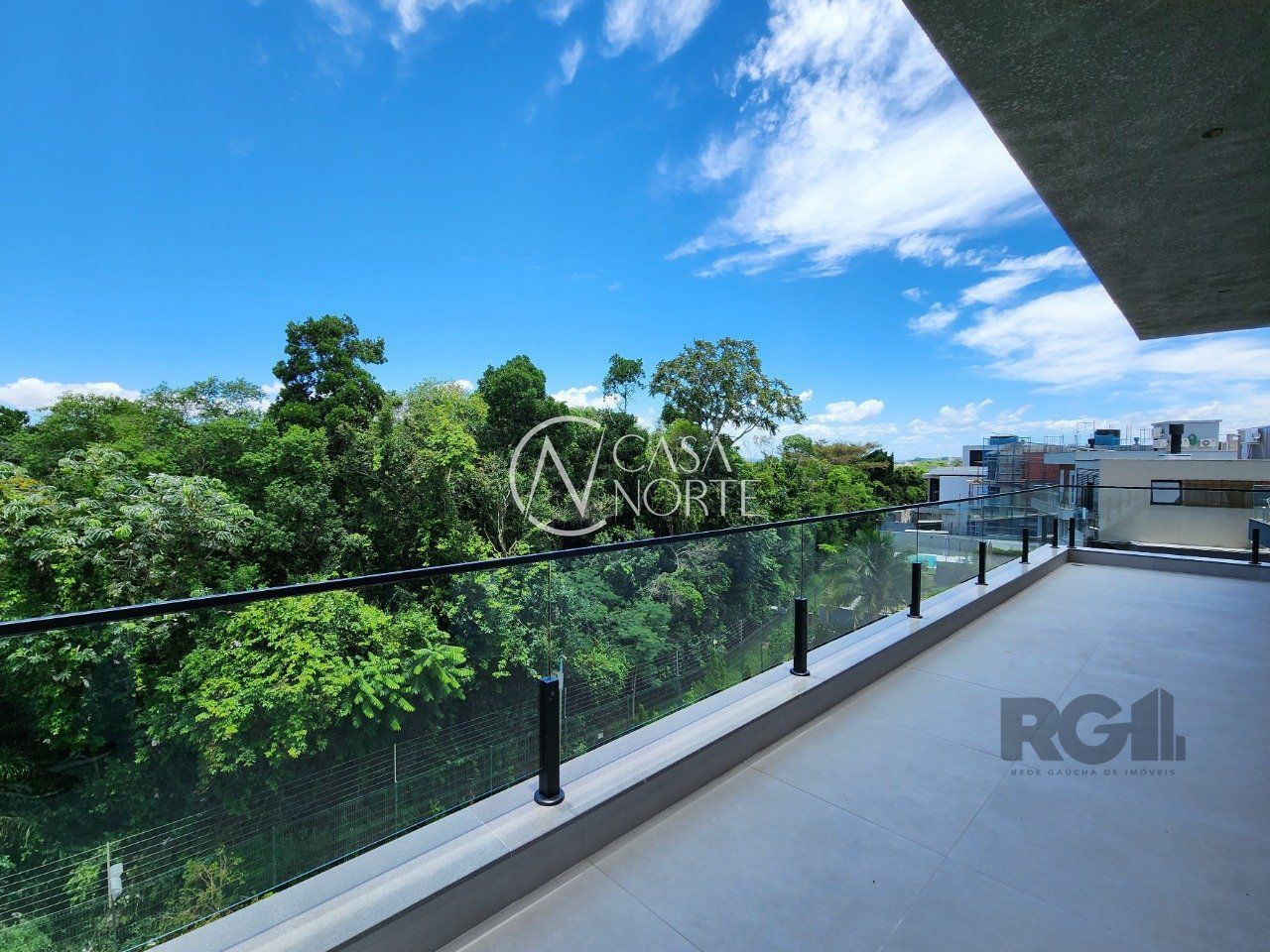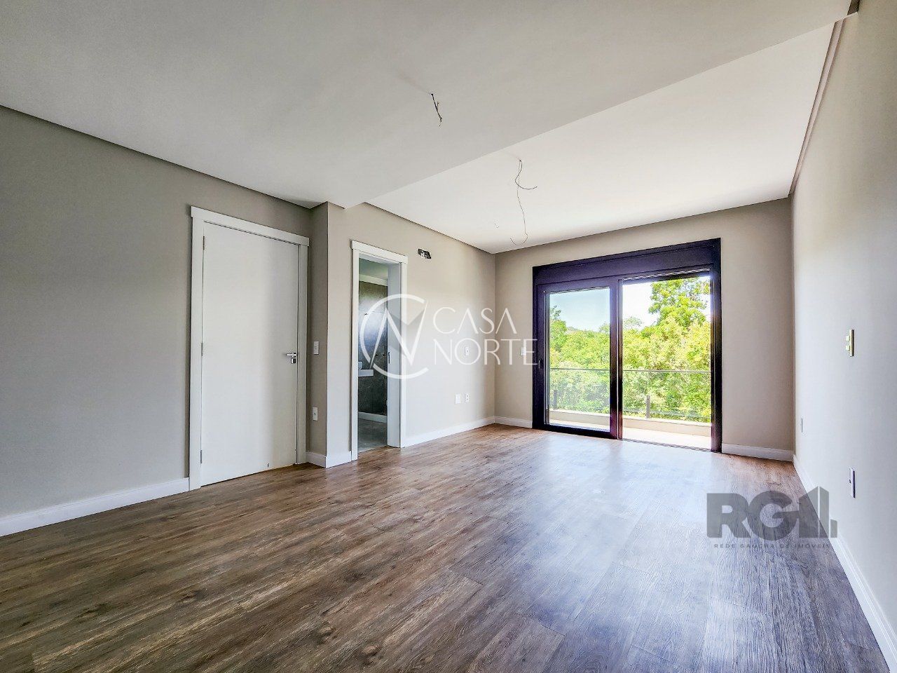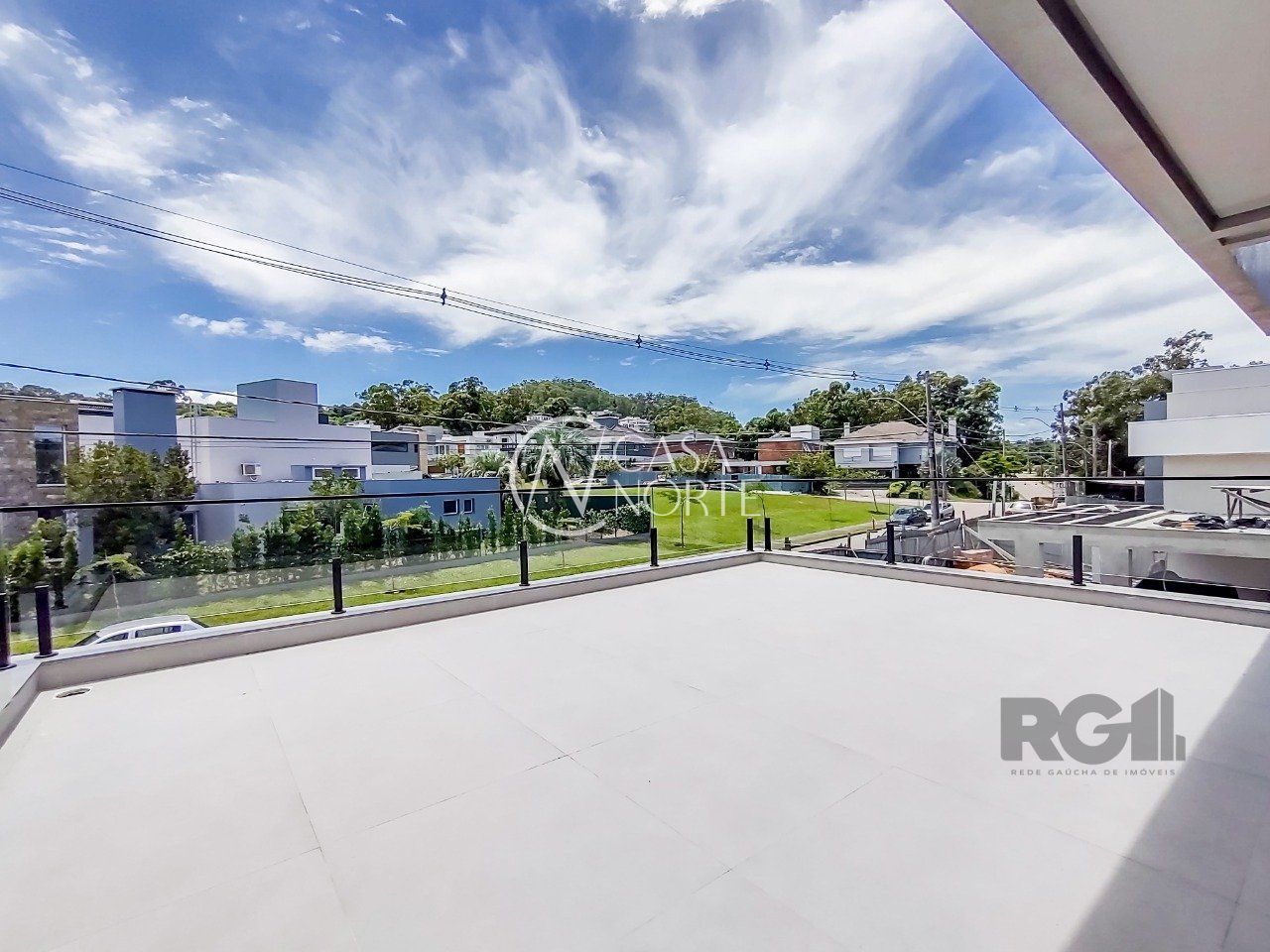 Parte superior são 3 suítes, sendo uma máster voltada para a área de preservação, com closet e sacada interligando à 2ª suíte. 3ª suíte voltada para frente com terraço amplo,