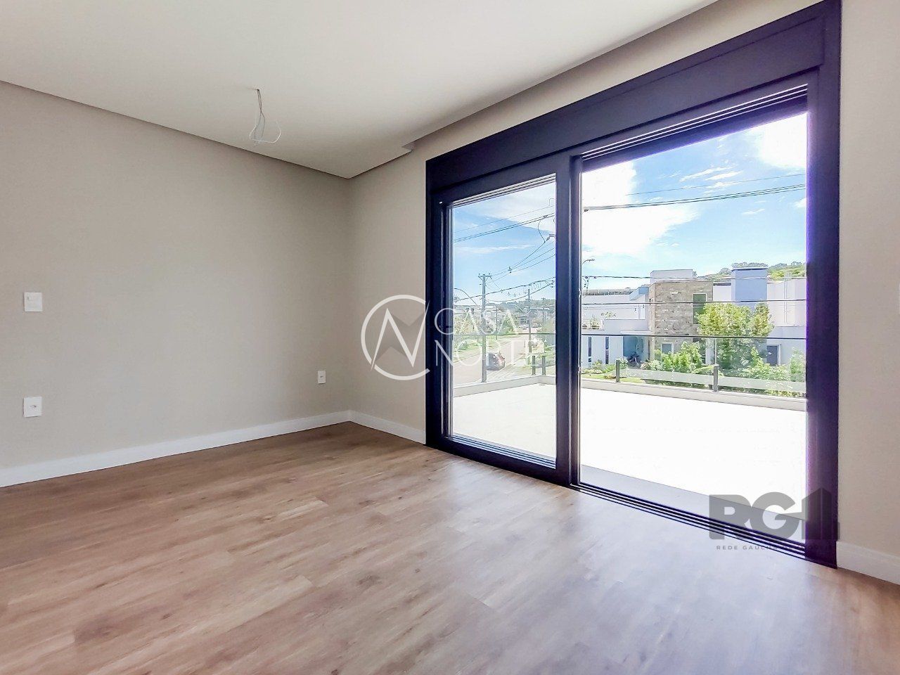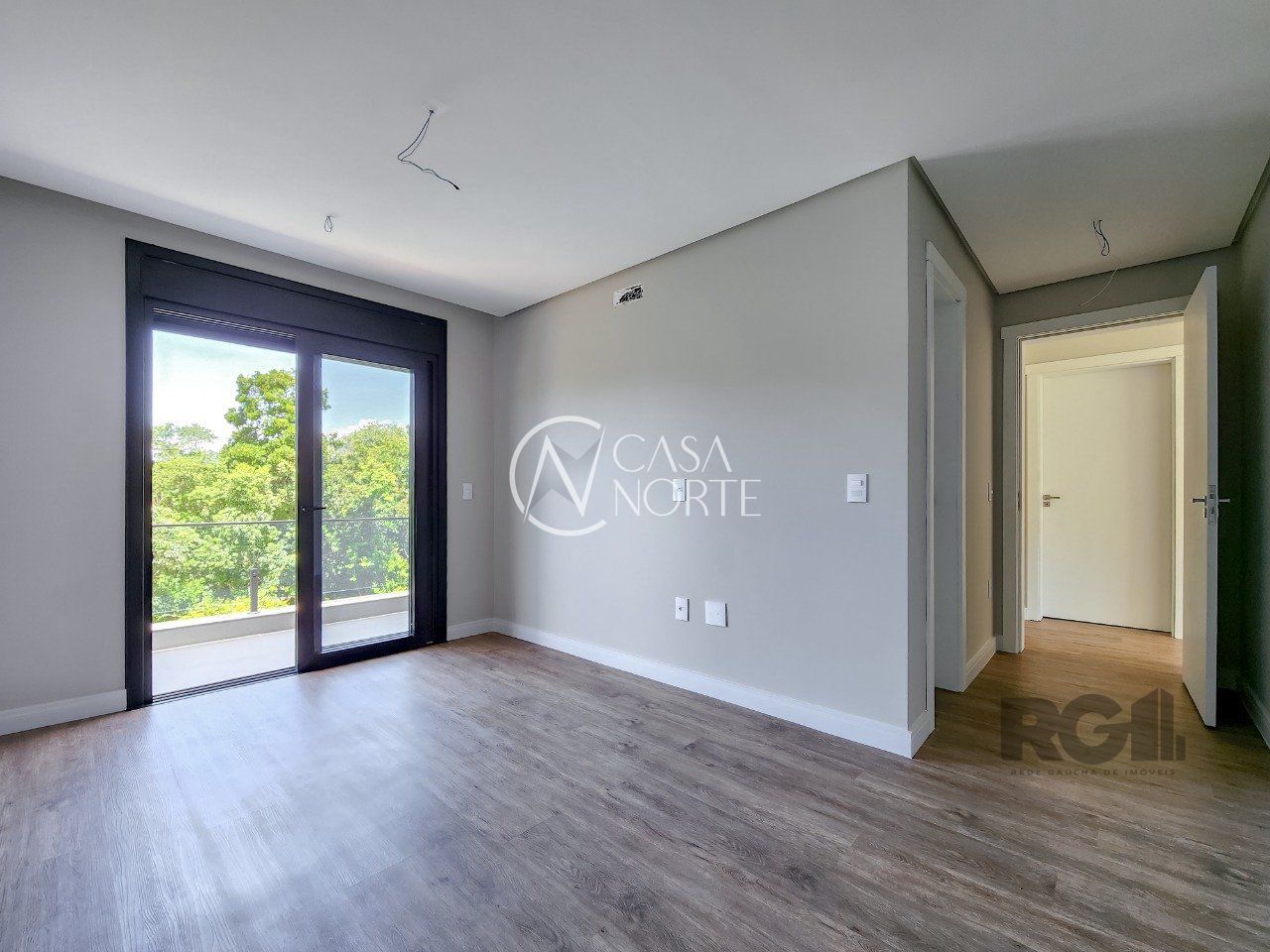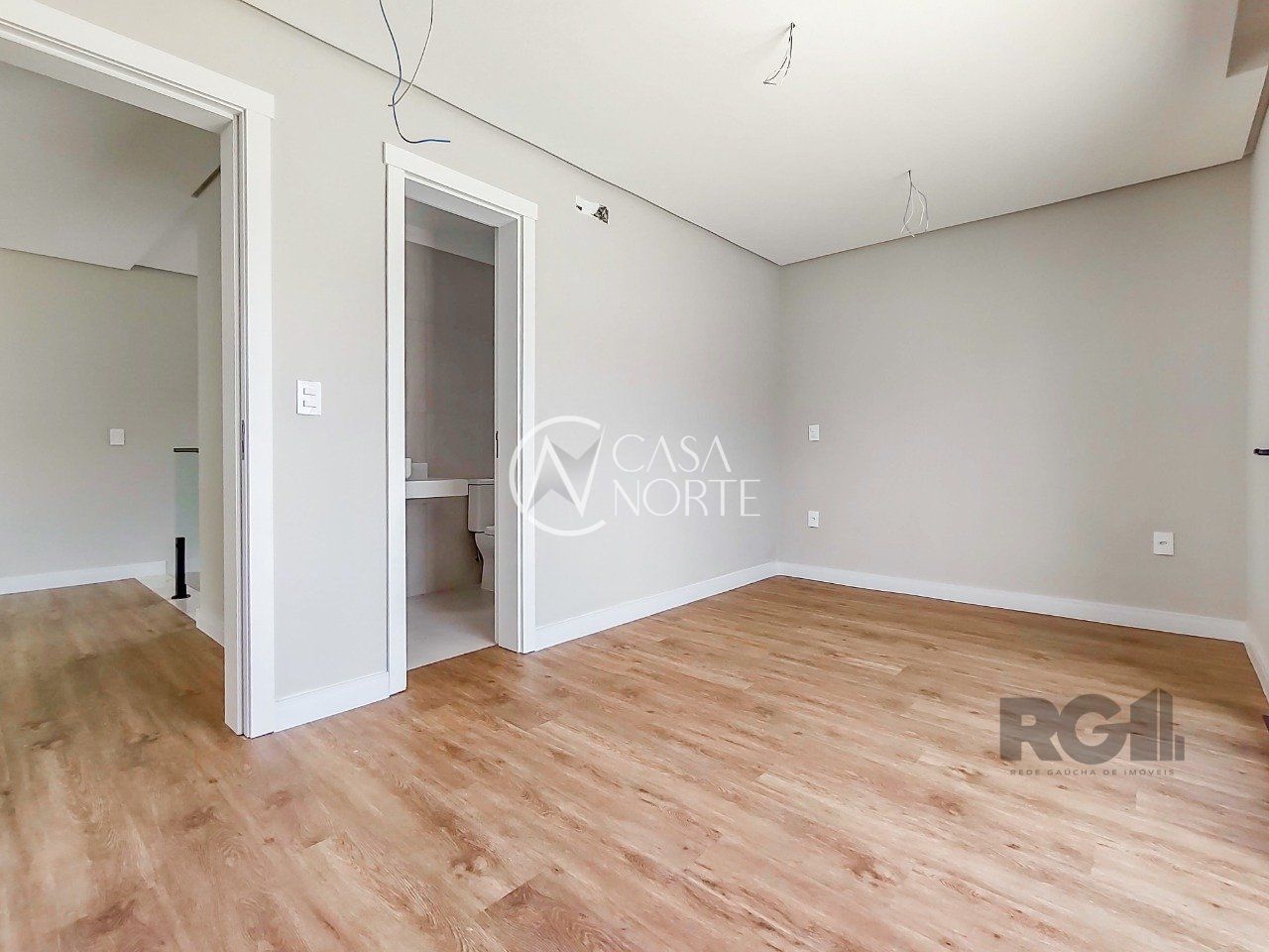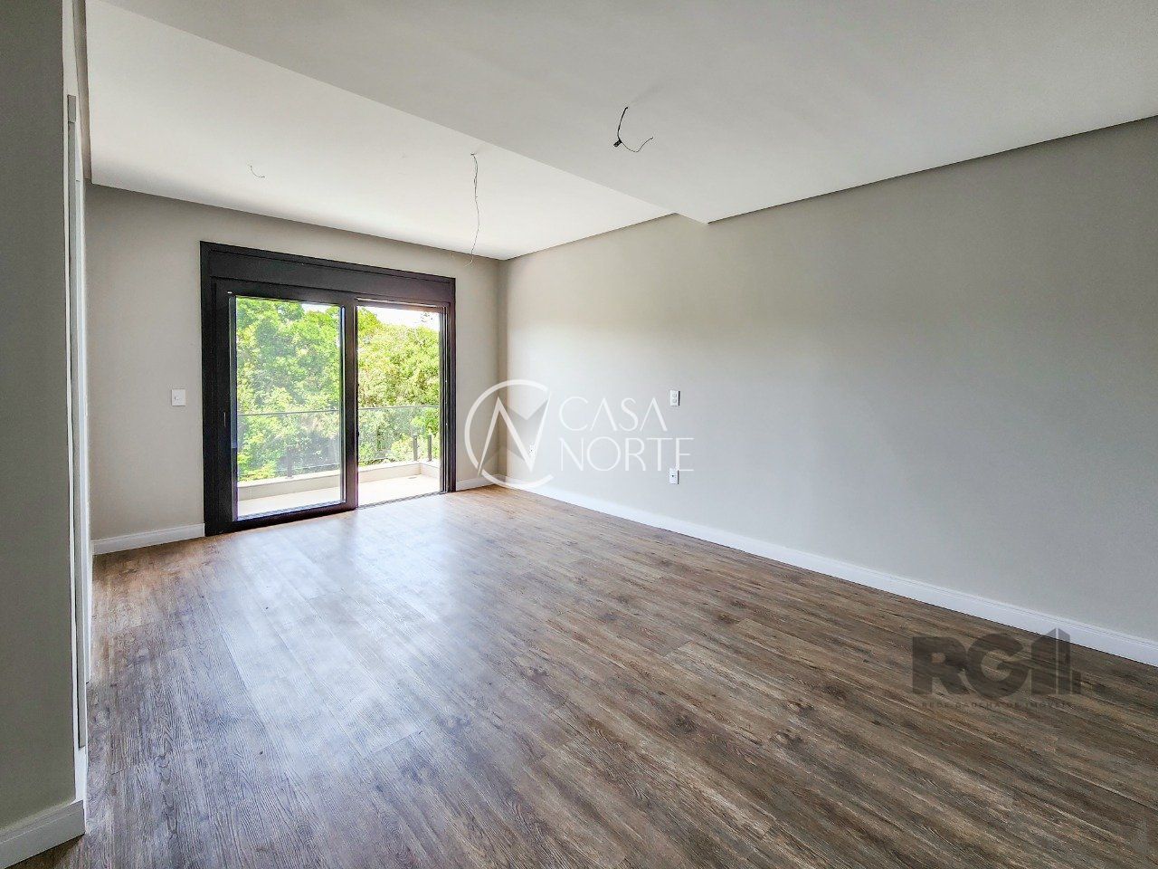 Parte superior são 3 suítes, sendo uma máster voltada para a área de preservação, com closet e sacada interligando à 2ª suíte. 3ª suíte voltada para frente com terraço amplo,