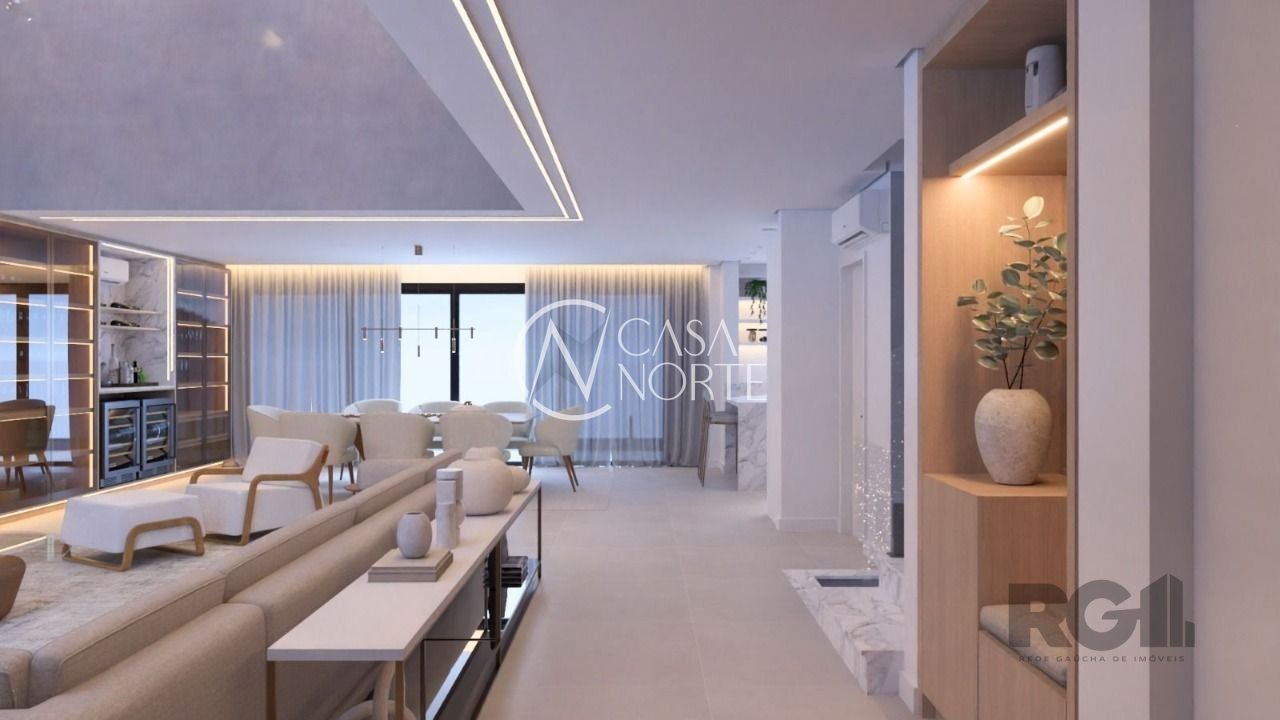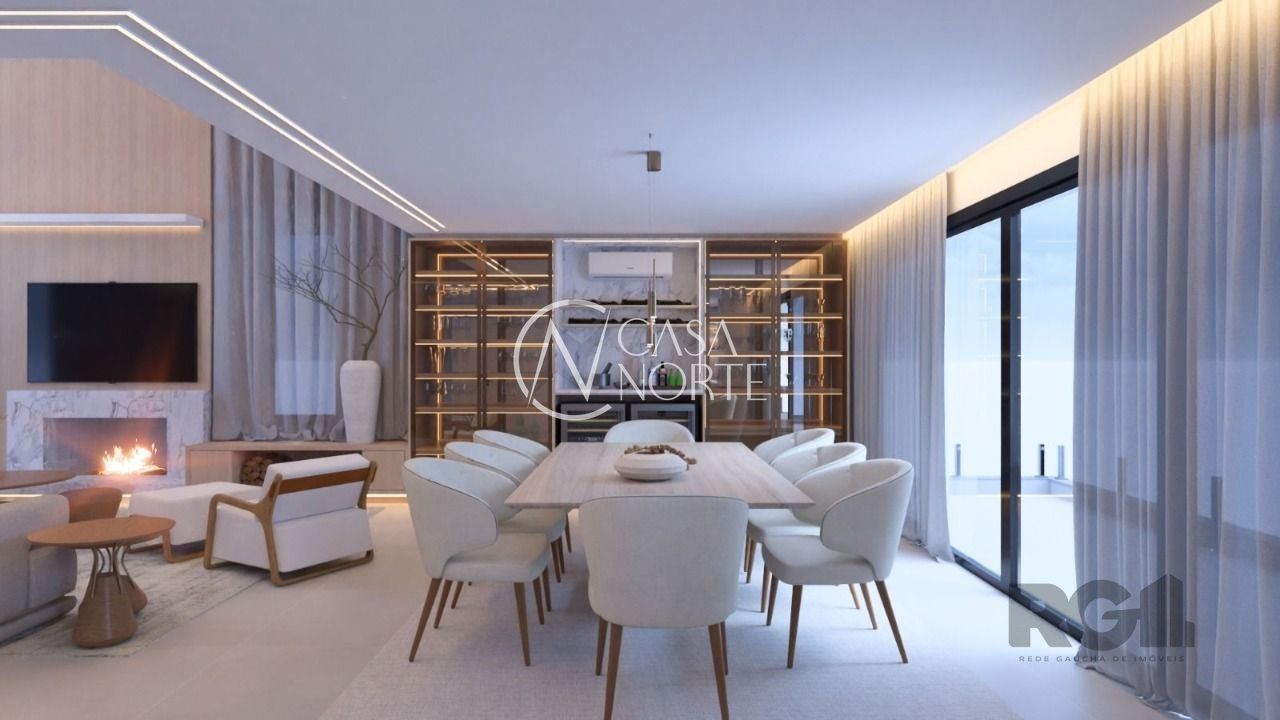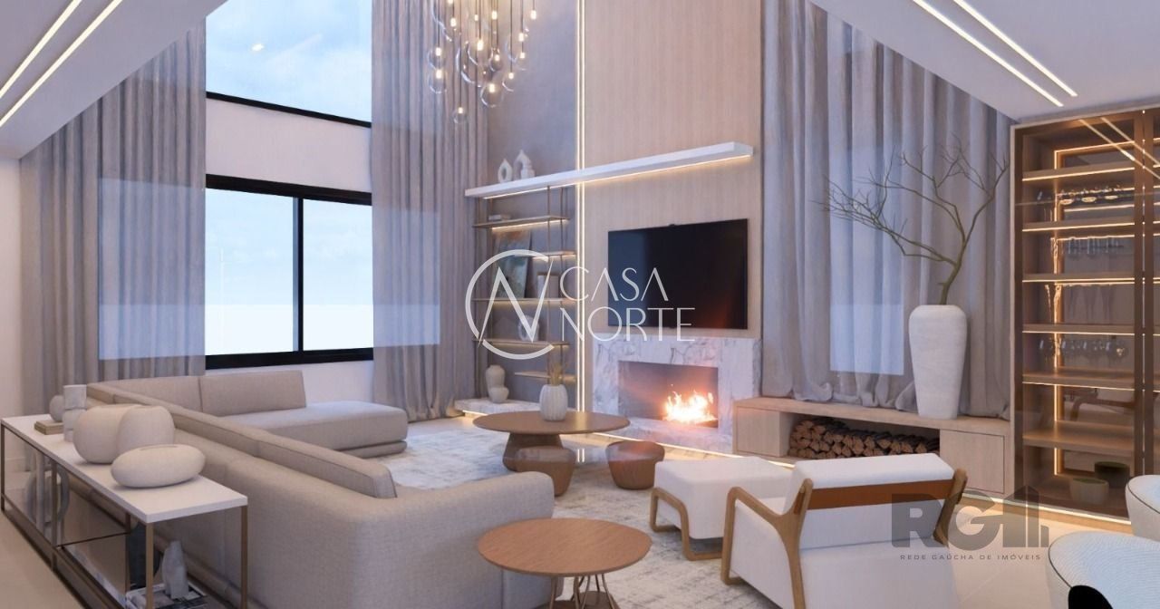 No segundo nível living e estar/jantar integrados, pé direito duplo. Cozinha , lavabo, lareira, gabinete que pode ser a 4ª suíte, ampla sacada com vista para app.