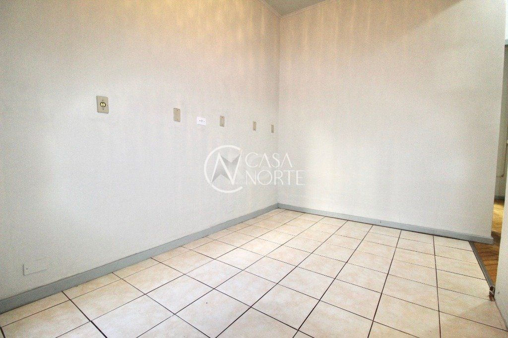 A sala tem uma porta de correr que dá acesso à sacada.