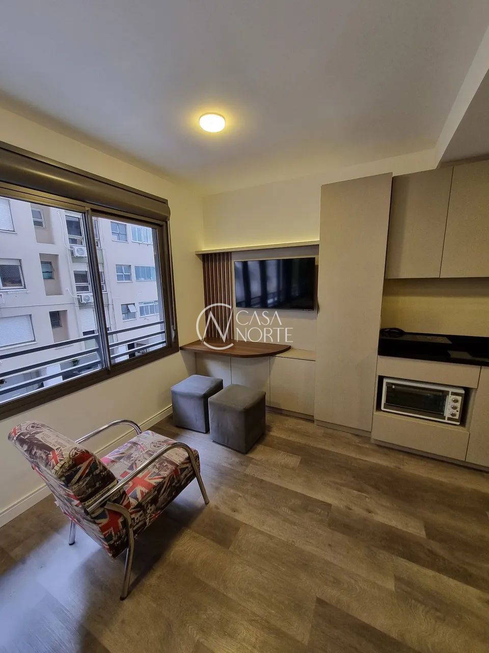 Studio mobiliado, com armários no quarto, cama, Tv, ar condicionado, espaço home office, cozinha com geladeira, cooktop, microondas, chaleira elétrica, louças e talheres, no Condomínio JP Redenção para Av. João Pessoa e Parque da Redenção, excelente posição solar, com janelas amplas. Plantas compactas, espera para máquina de lavar dentro do apartamento, tomadas tipo USB, fechadura digital (nas unidades privativas que garantem maior segurança e praticidade aos proprietários que optarem por locações em plataformas de curta temporada (Airbnb, Booking entre outros), e box de estacionamento rotativo. Imóvel quitado, ACEITA FINANCIAMENTO.