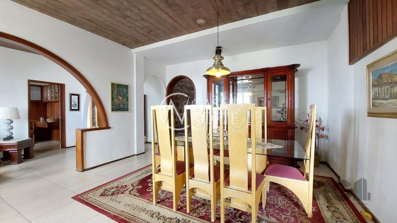 Casa á venda no bairro Sétimo Céu, zona sul de Porto Alegre com terreno de 800m². Área privativa de 347m². Possui 3 amplas suítes, uma com close e banheira, banheiros amplos, carpetes, vista para o rio Guaíba, Living para 3 ambientes, lareira, uma ótima sacada, com belíssima vista e Churrasqueira. Lavabo, Sala de jantar ampla com piso frio, Sala de estar ampla com piso frio, Copa, cozinha ampla com armários e cristaleira, área de serviços com churrasqueira, adega, salão de festas com bar e churrasqueira com belíssima vista, escritório sobre o salão de festas com ampla sacada e espetacular vista para o Rio Guaíba, piscina de concreto, jardins frente e fundos iluminação em todo o pátio com postes de ferro com globos, pomar com arvores frutíferas, canil, garagem para três carros.