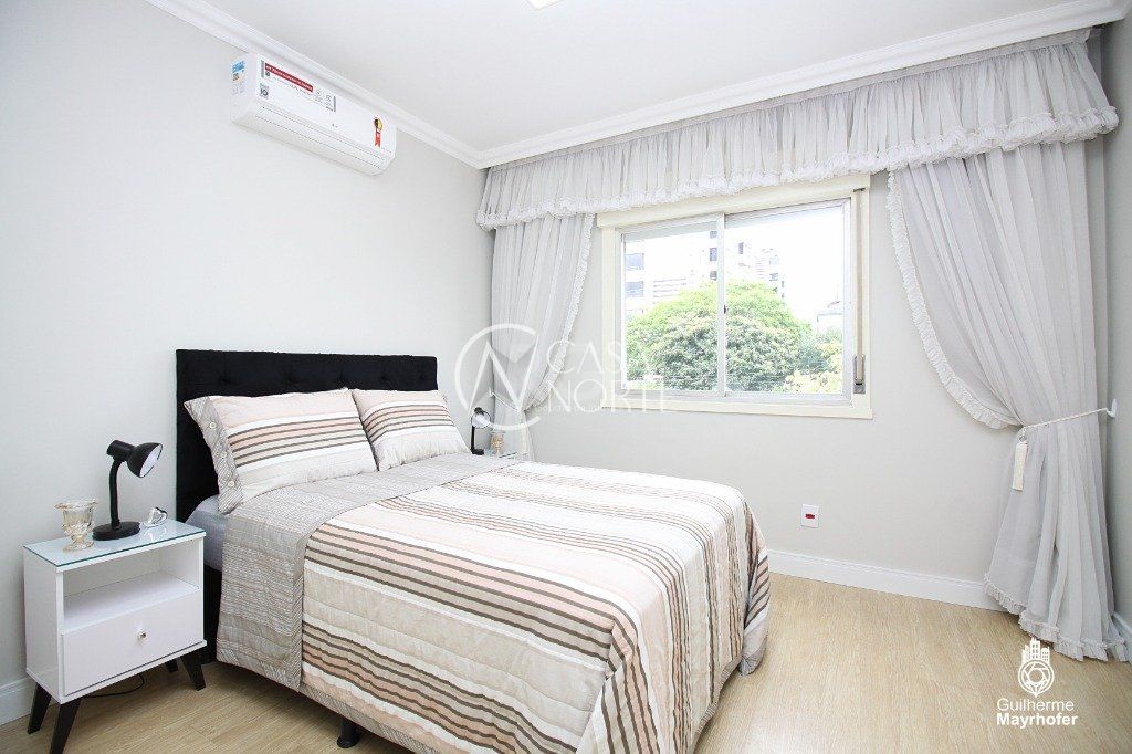 Lindo apartamento mobiliado, com 01 dormitório, banheiro social com ducha inteligente que adapta-se automaticamente a aquecimento a gás ou eletricidade, living para 02 ambientes com SPLIT, cozinha, área de serviço com Junker e 02 vagas de garagem, sendo uma coberta e outra descoberta. Ótima orientação solar, possuindo cômodos bem iluminados e ventilados. Condomínio com porteiro eletrônico, terraço coletivo, salão de festas e com baixo custo condominial. Excelente localização na zona norte, a poucos metros do Hospital Nossa Sra. Da Conceição, próximo ao Shopping Iguatemi e Bourbon Wallig.