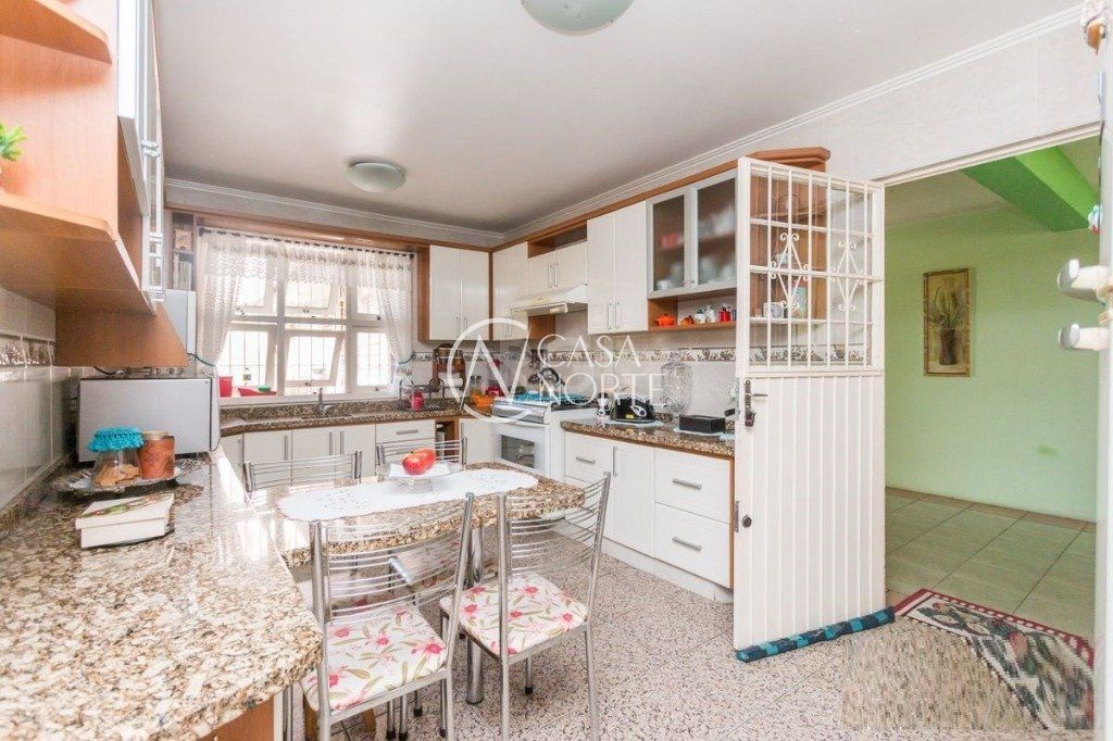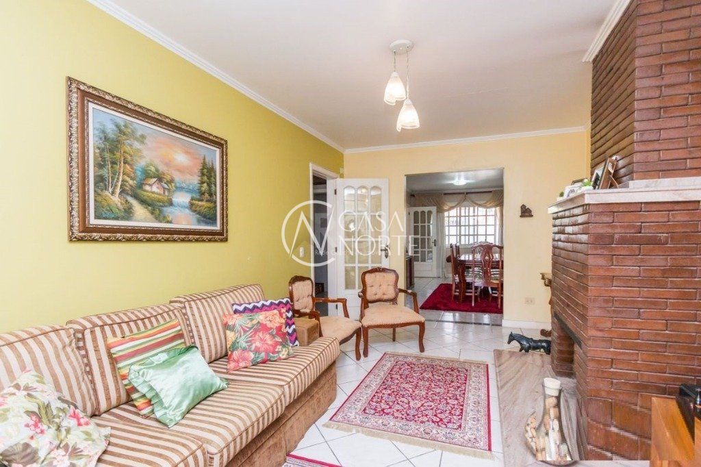 Excelente casa com 3 dormitórios sendo 1 suíte com closet, churrasqueira, lareira, sacada, três salas, cozinha/copa, banheiro social, lavabos, lavanderia e 4 vagas de garagem sendo 3 cobertas, possui portão elétrico e sistema de alarme interno. Conta com cômodos bem arejados e com boa iluminação.