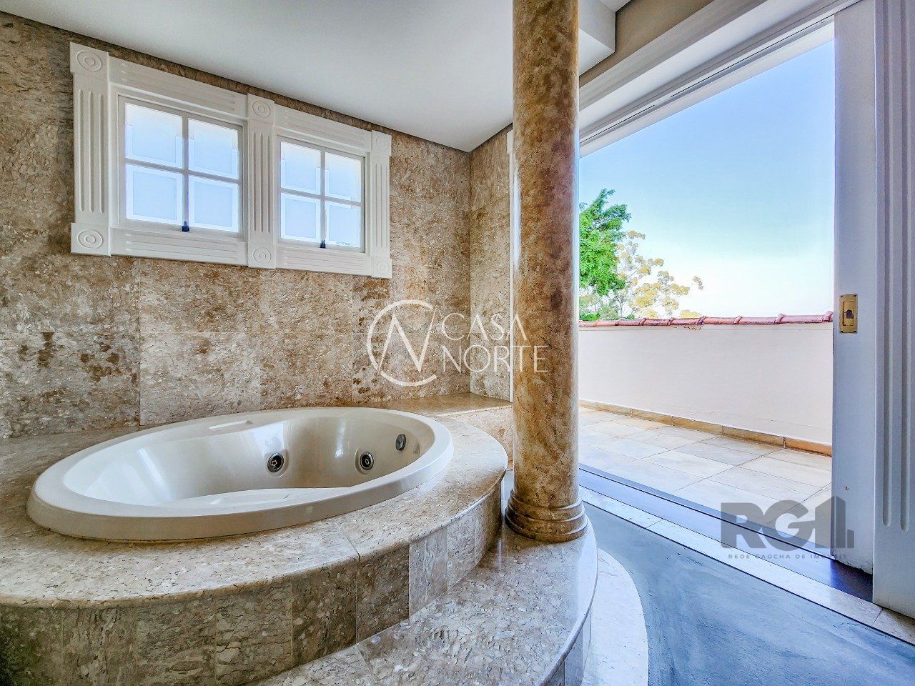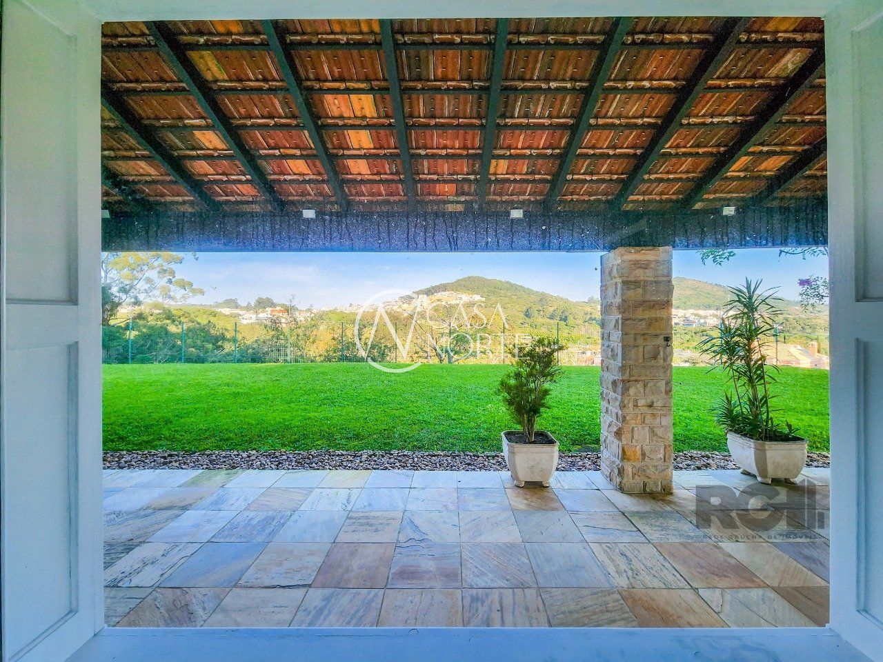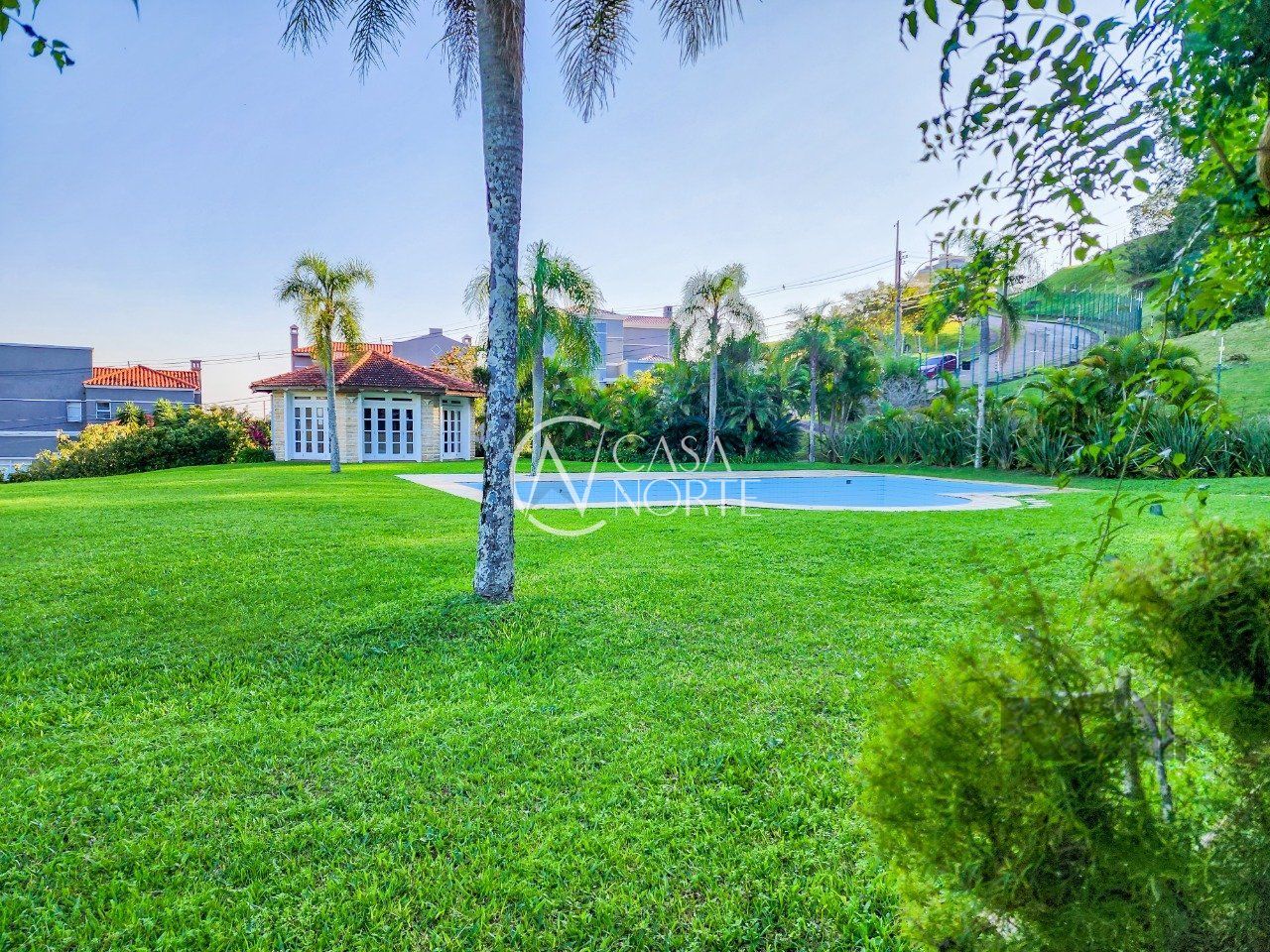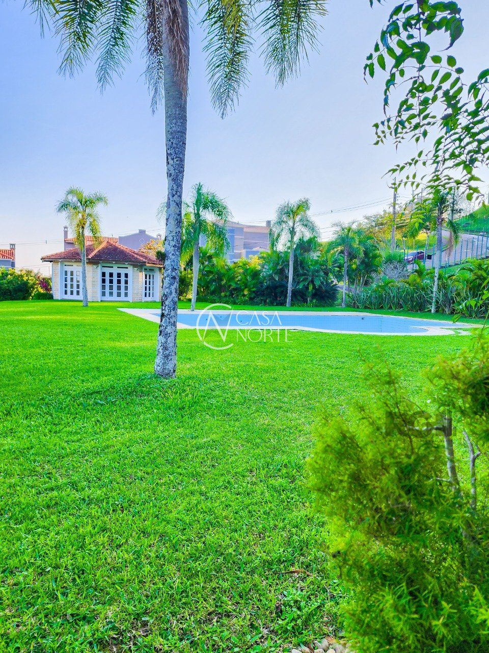 A parte externa é o ponto alto da casa, pátio enorme rodeado por áreas de preservação, piscina e ainda um quiosque com parrilla e um banheiro completo que serve de apoio a piscina.