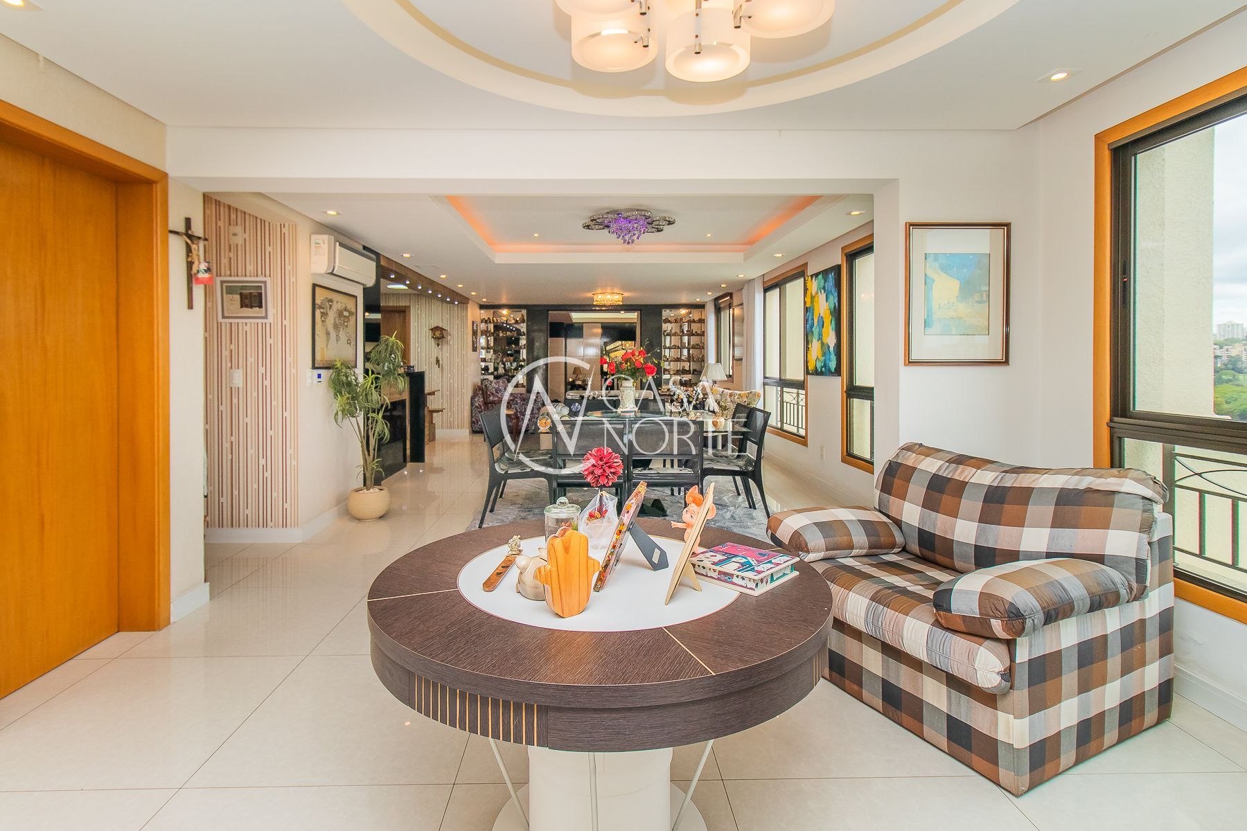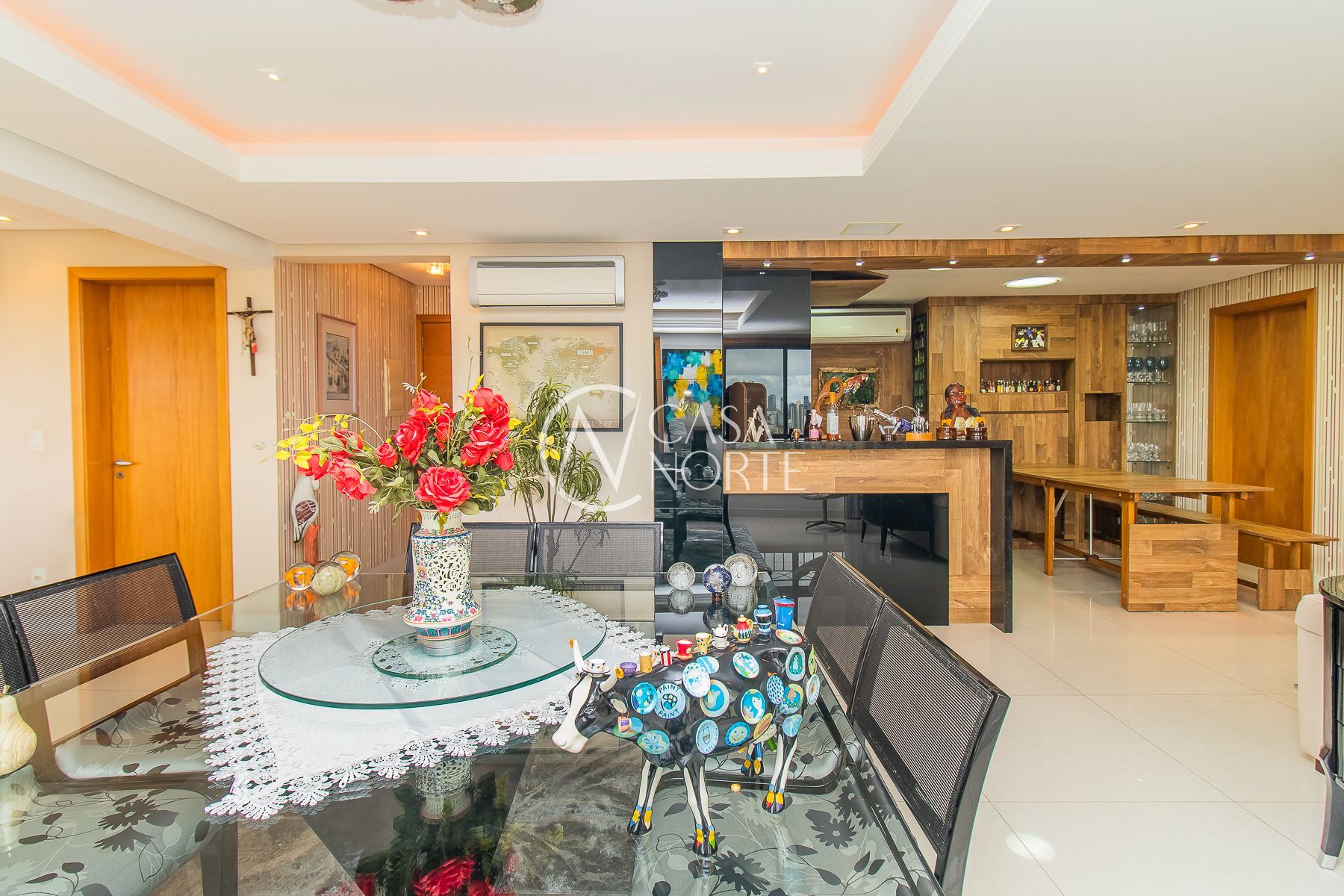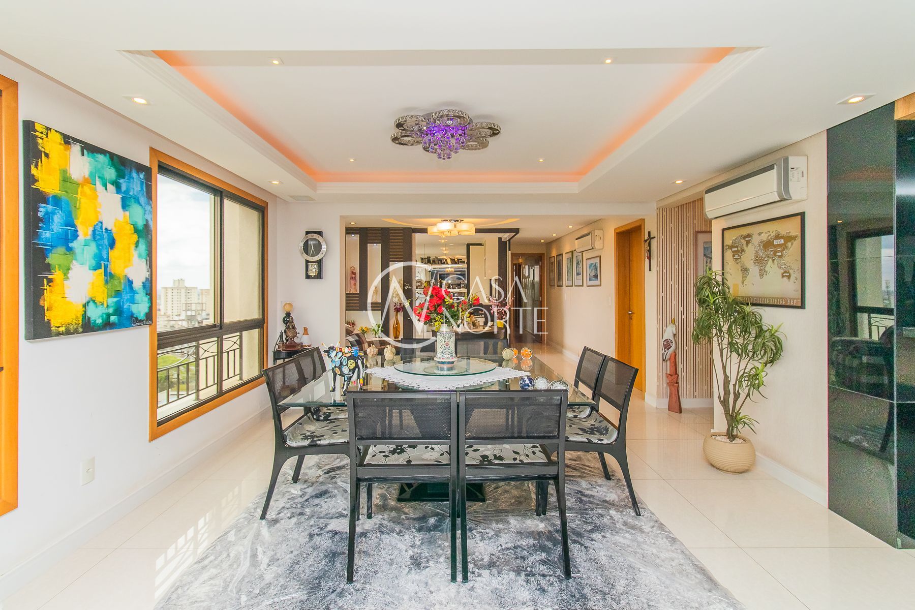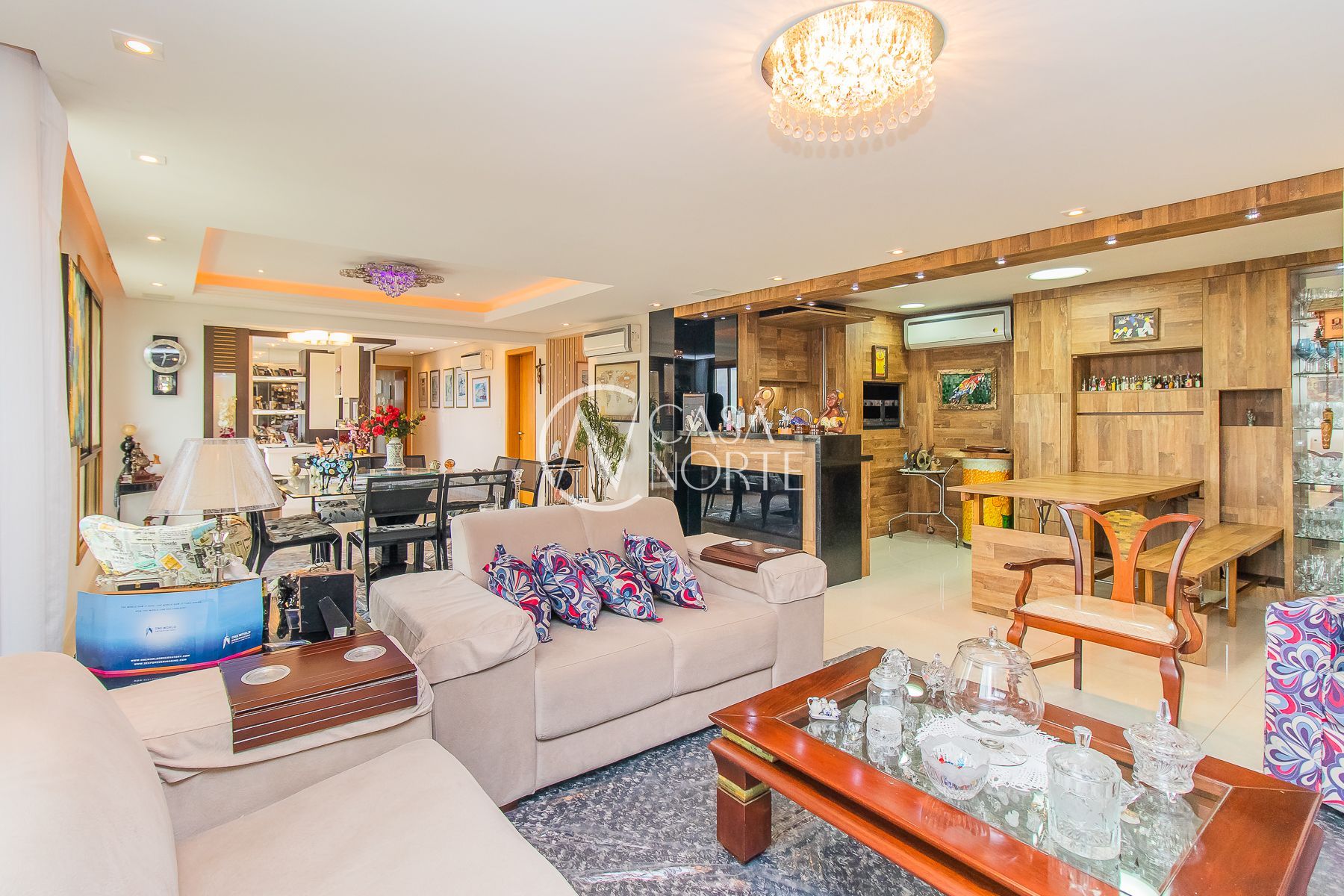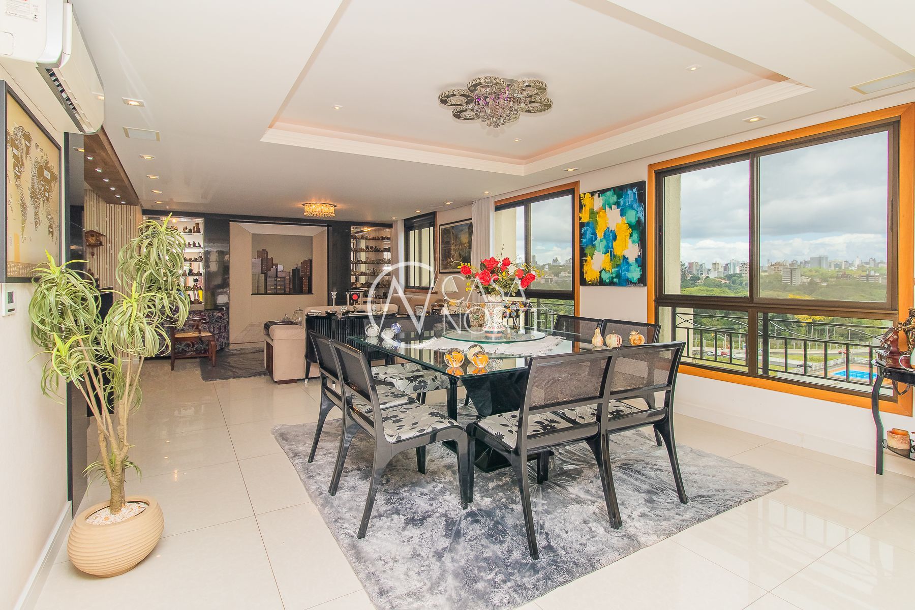 Impecável apartamento semimobiliado de 196m² privativos em andar alto com 3 dormitórios, sendo um dormitório transformado em escritório, ampla suíte, living com 3 ambientes e espaço gourmet com churrasqueira, sala de cinema com telão, projetor e home teather. Banheiro social, lavabo, cozinha espaçosa com móveis sob medida e equipada, área de serviço individual e 7 aparelhos de ar condicionado. Além de 4 vagas de garagem cobertas e escrituradas.