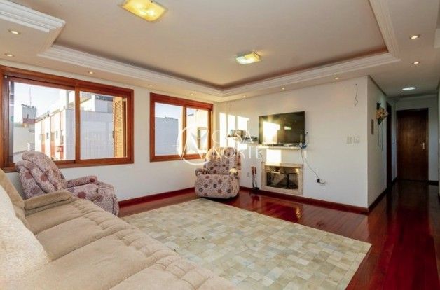 Linda cobertura de 4 dormitórios, 1 suíte , 4 banheiros para venda ,4 vagas de garagens cobertas e escrituradas + 1 terraço aberto com deck , piscina e churrasqueira, semi mobiliado no bairro Jardim Lindóia em Porto Alegre/RS. Piso inferior: Sala ampla para 3 ambientes, sala de estar e sala de jantar, com 1 ampla sacada fechada, lavabo, 3 dormitórios, 1 suíte, 1 banheiro social, copa, cozinha , área de serviço, dependência de empregada ,lavanderia, banheiro auxiliar. Escada em madeira com acesso para a cobertura. Piso superior: 1 ampla sala social para 3 ambientes ,lareira, cozinha com fogão , churrasqueira,1 banheiro social + 1 terraço aberto com deck , piscina. 4 vagas de garagens cobertas e escrituradas. Condomínio com gás central, salão de festas, churrasqueira, cozinha e banheiro auxiliar, elevador. Cobertura com linda vista para o bairro Jardim Lindóia. Agende sua visita!!