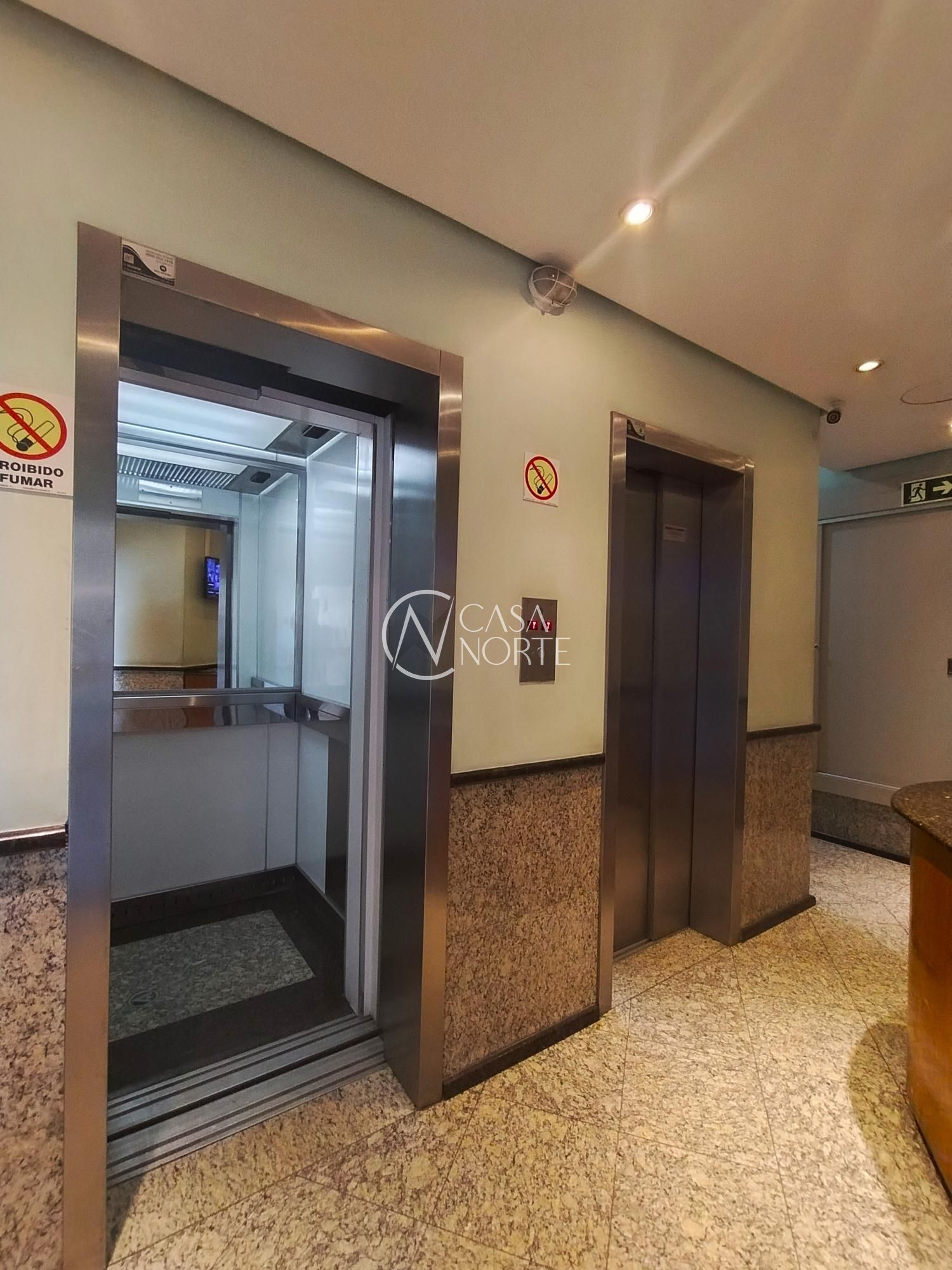 Edifício com portaria e dois elevadores, oferecendo praticidade e segurança.