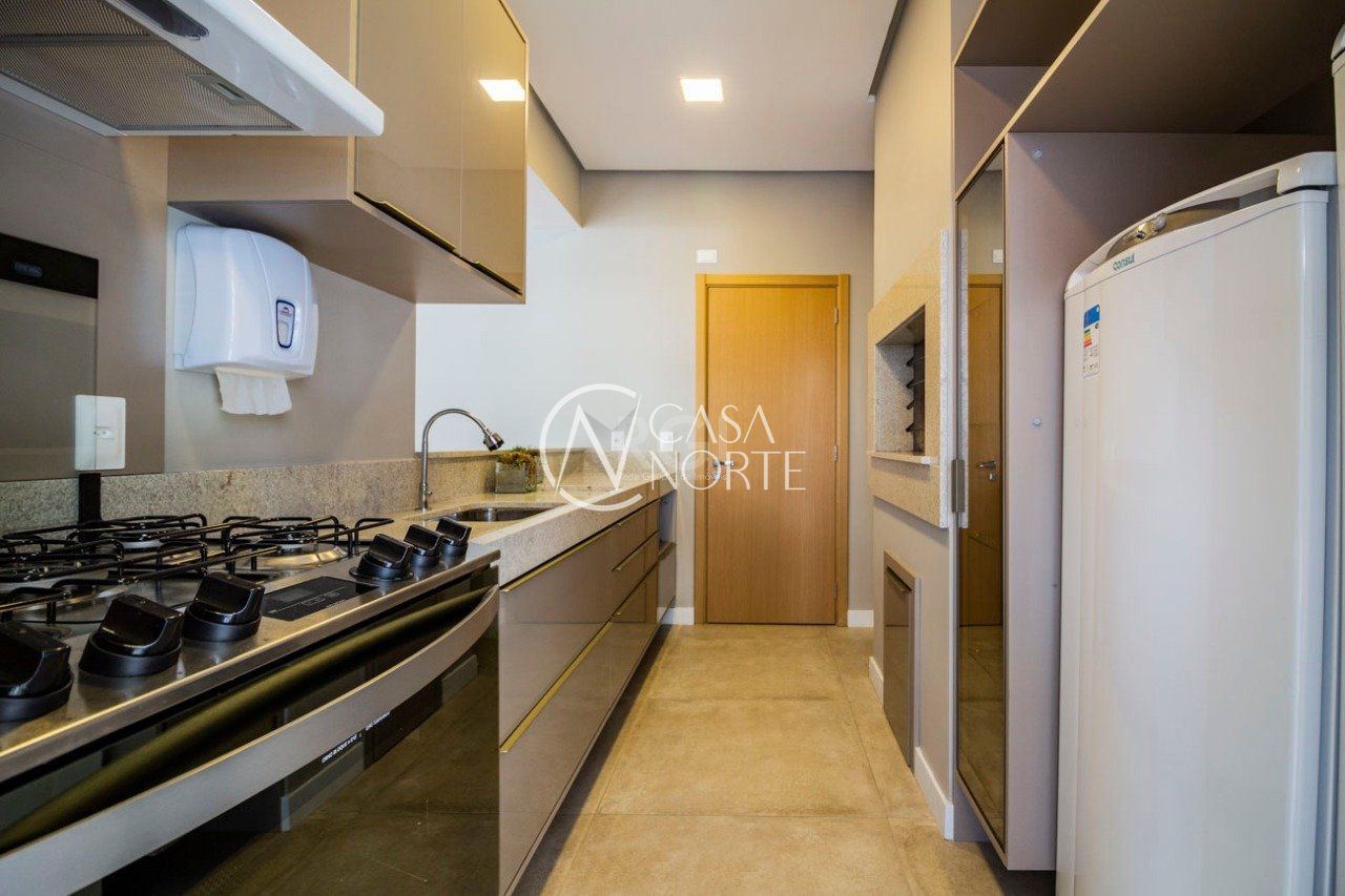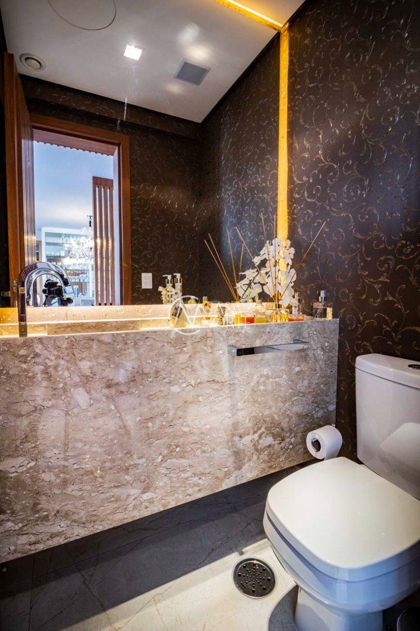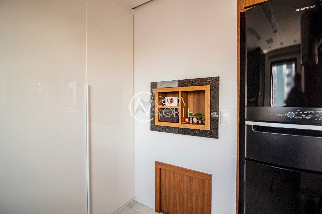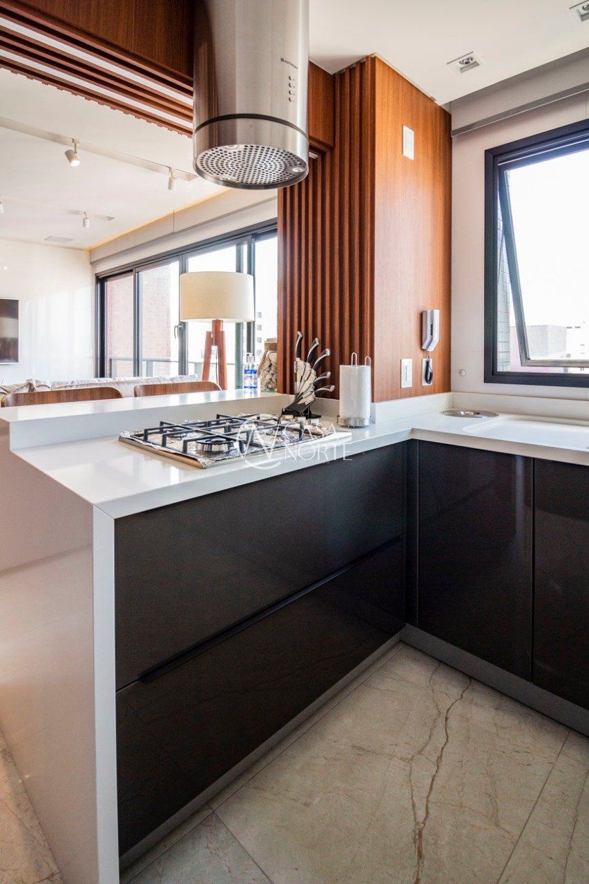 O living para dois ambientes, integrado à cozinha americana montada e à churrasqueira, cria o cenário perfeito para receber amigos e familiares. O lavabo elegante, a área de serviço funcional e a excelente orientação solar deixam o imóvel iluminado e arejado o ano todo. Móveis sob medida em todas as peças evidenciam o cuidado em cada detalhe.