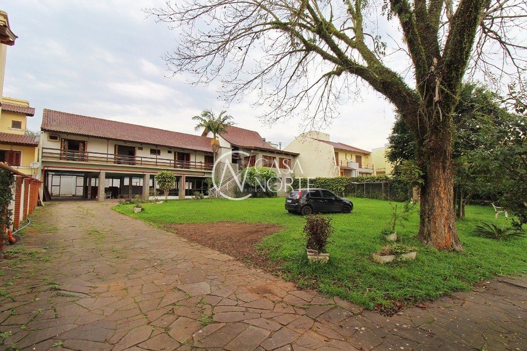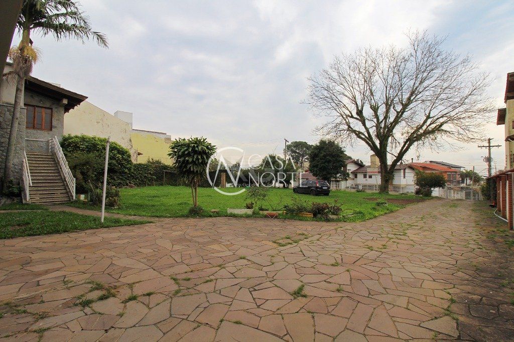 Amplo terreno em região alta do Bairro, frente com 27,50m e extenção de frente a fundos de 55m, possui casa com 840m² construida em cima, sendo 7 dormitórios, onde 3 são suítes, amplo salão com lareira e demais dependências, ideal para construção. Analisa parte do pagamento em permuta. Agende sua visita!