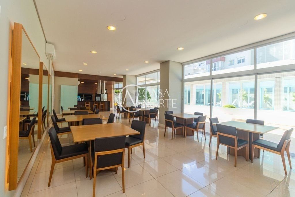Prédio de alto padrão, hall privativo, elevadores codificados, revestido em granito e pastilhas, salão de festas equipado, piscina térmica, academia, sauna, quadra poliesportiva infantil, sala de jogos e brinquedoteca, jardim e portaria com segurança 24h.