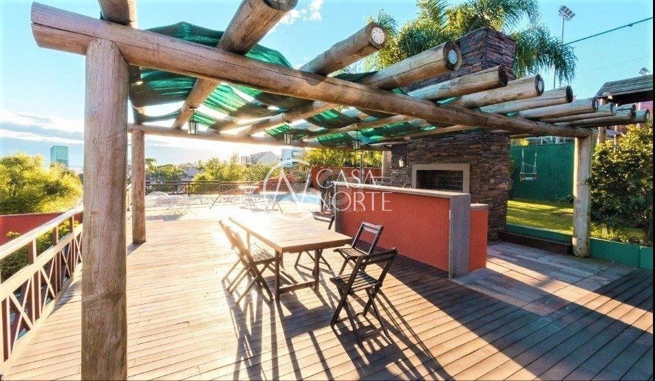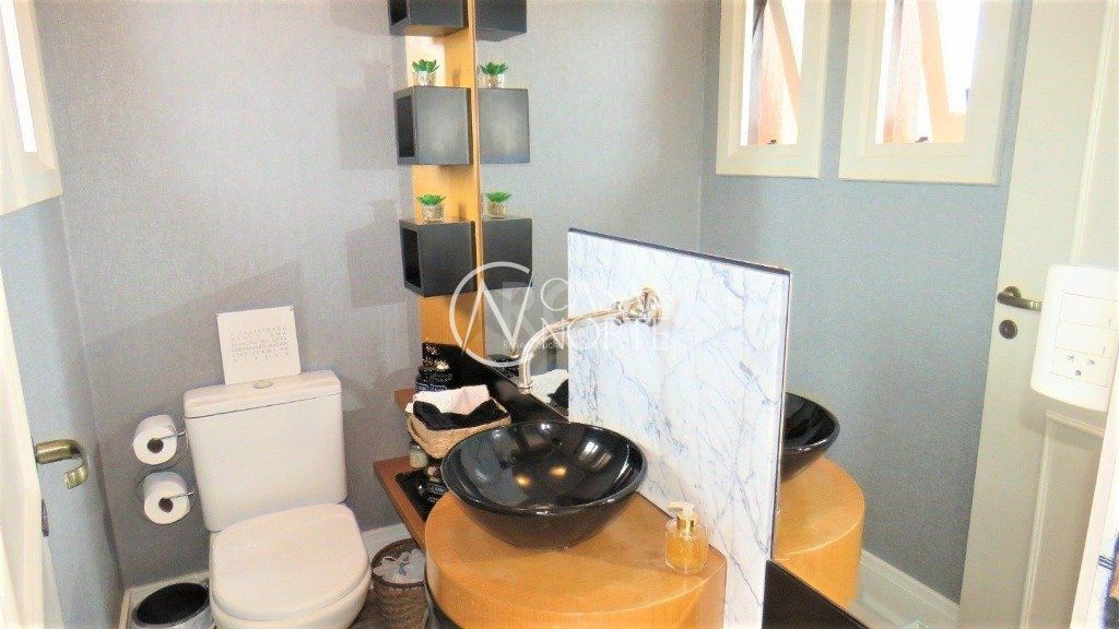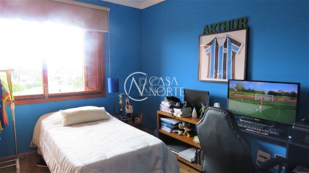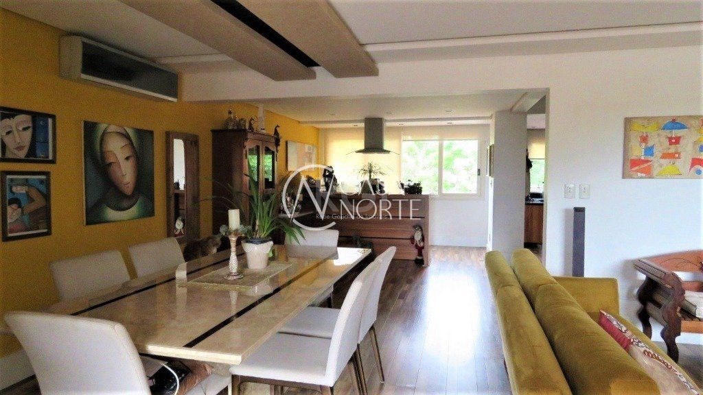 Excelente casa em condominio fechado no bairro Cristal! São 404m² privativos distribuídos em 3 dormitórios sendo 1 suíte master com hidro e closet, banheiro social com ventilação natural, amplo living para 3 ambientes com lareira, lavabo, cozinha americana planejada, lavanderia, dependência completa, pátio com espaço gourmet com churrasqueira e 02 vagas de garagem cobertas. O terceiro pavimento conta com estar íntimo, banheiro social e terraço com vista para o Guaíba. Ótima orientação solar, possuindo cômodos bem iluminados e ventilados. O condomínio dispõe de quadra esportiva, playground, espaço gourmet, piscinas, salão de festas e portaria 24h.