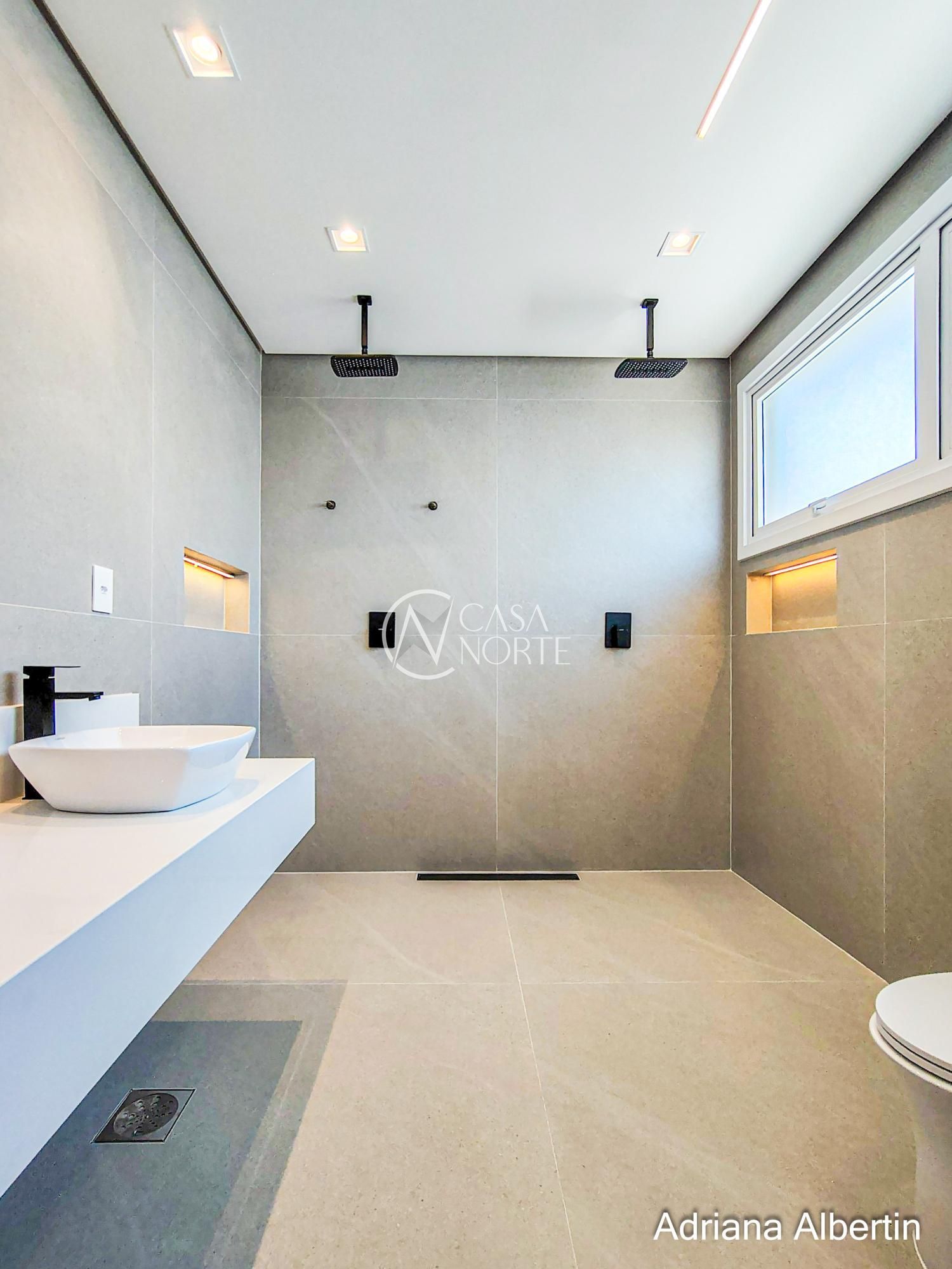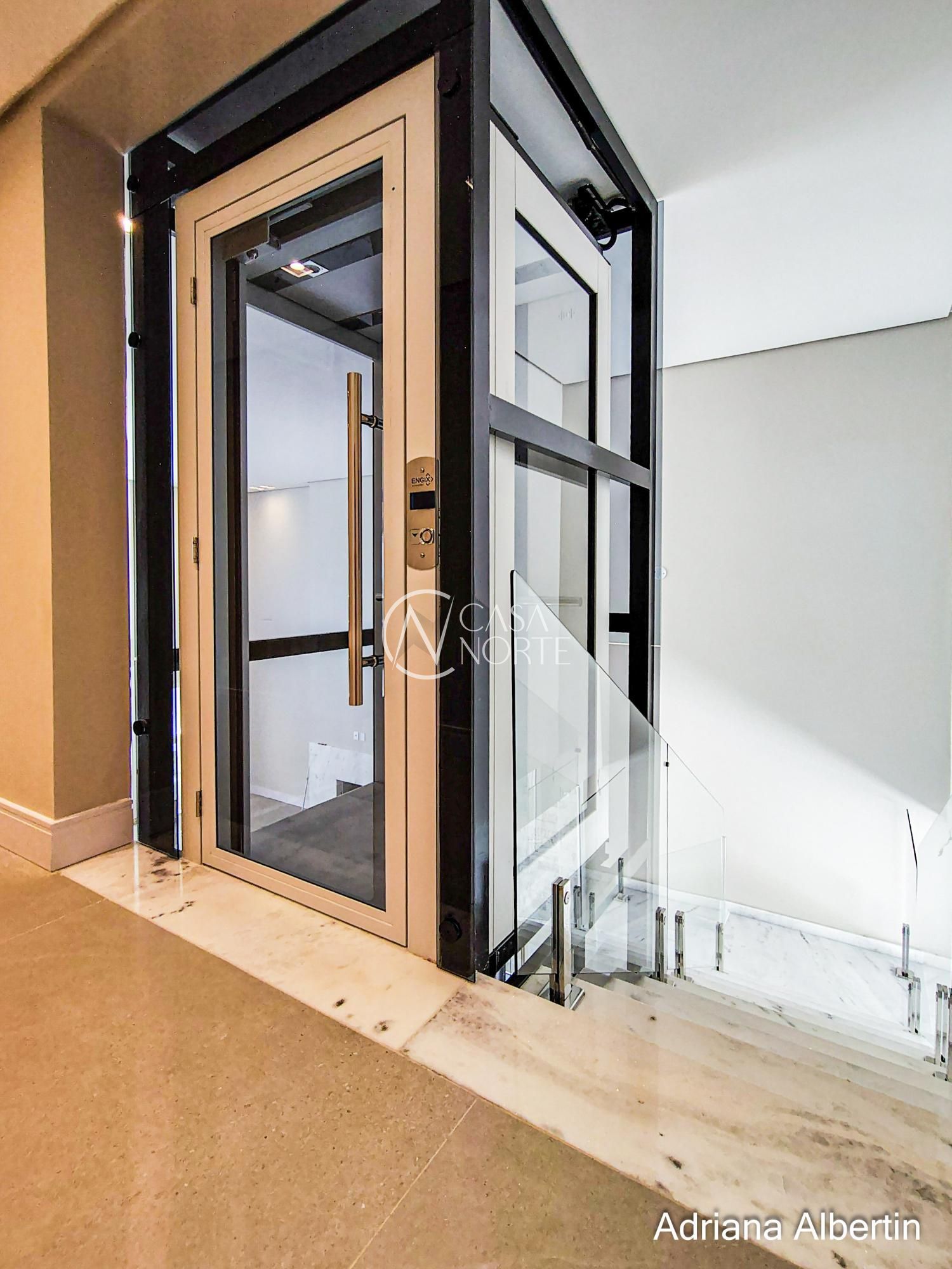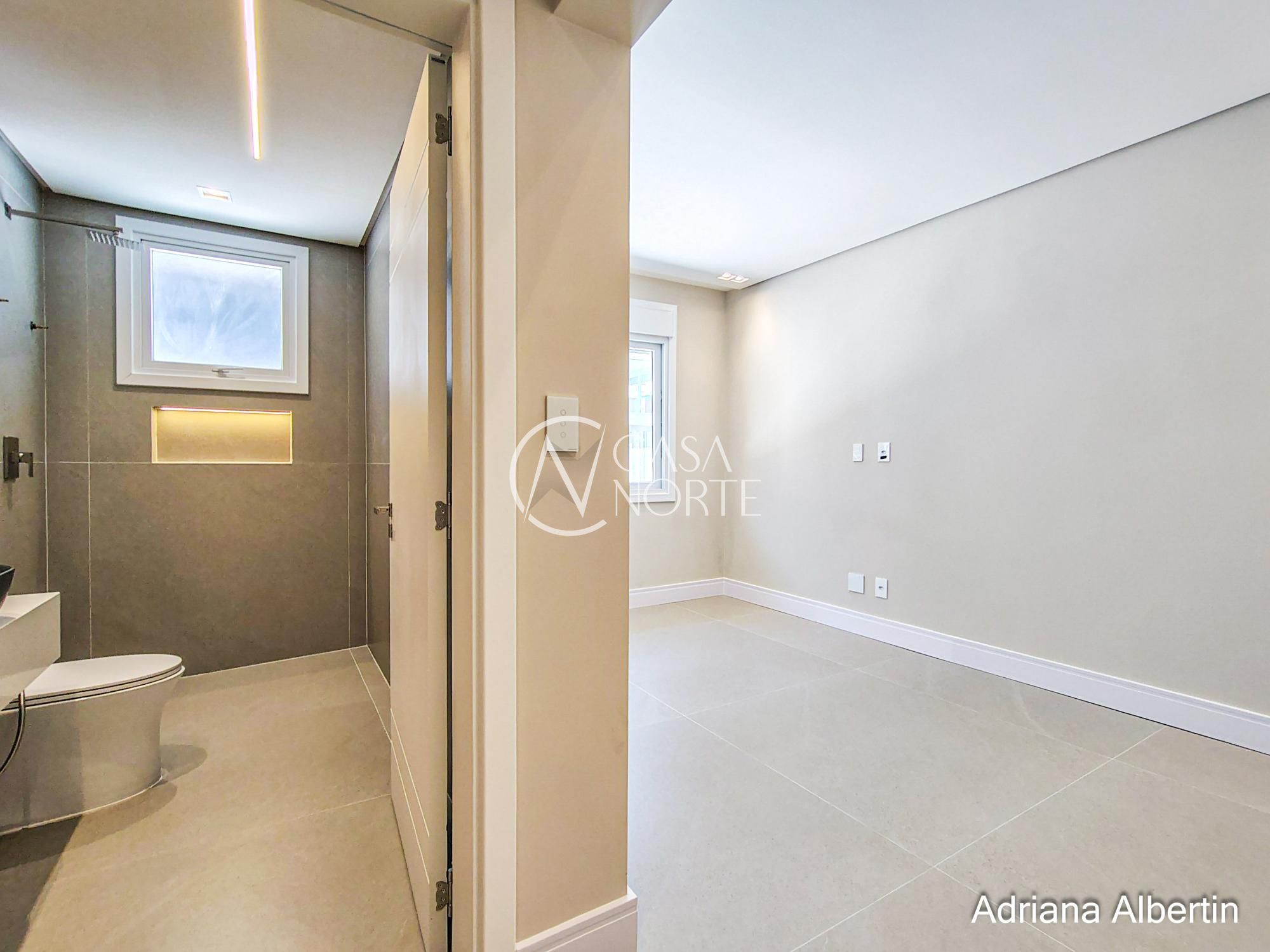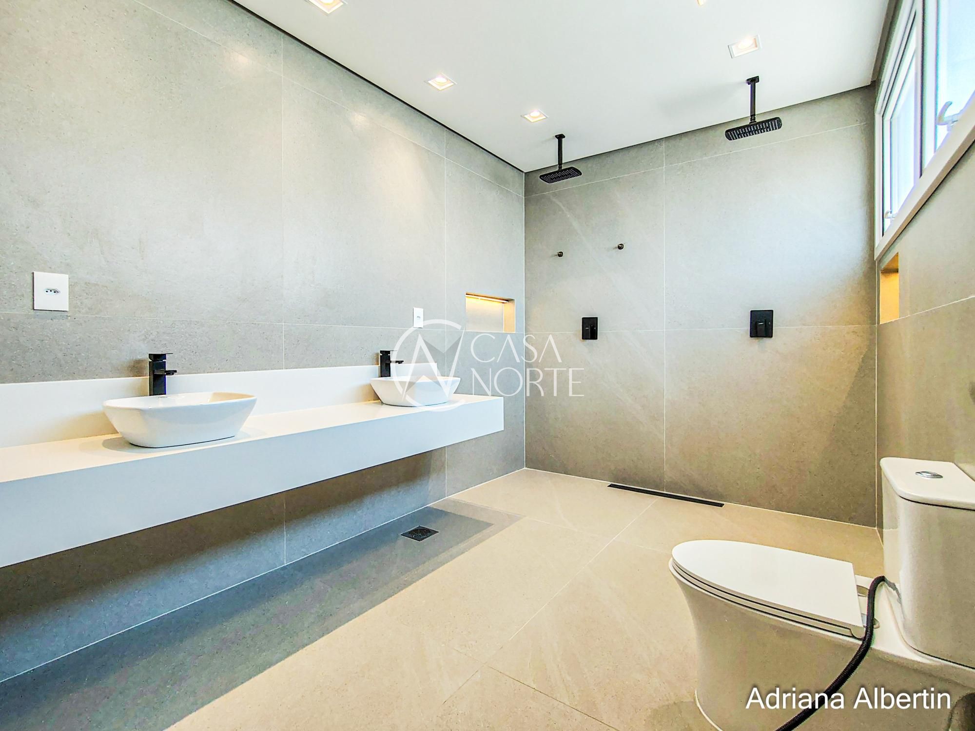 Na parte superior são 4 suítes, sendo uma máster com 42,59m² (incluindo closet e banheiro).