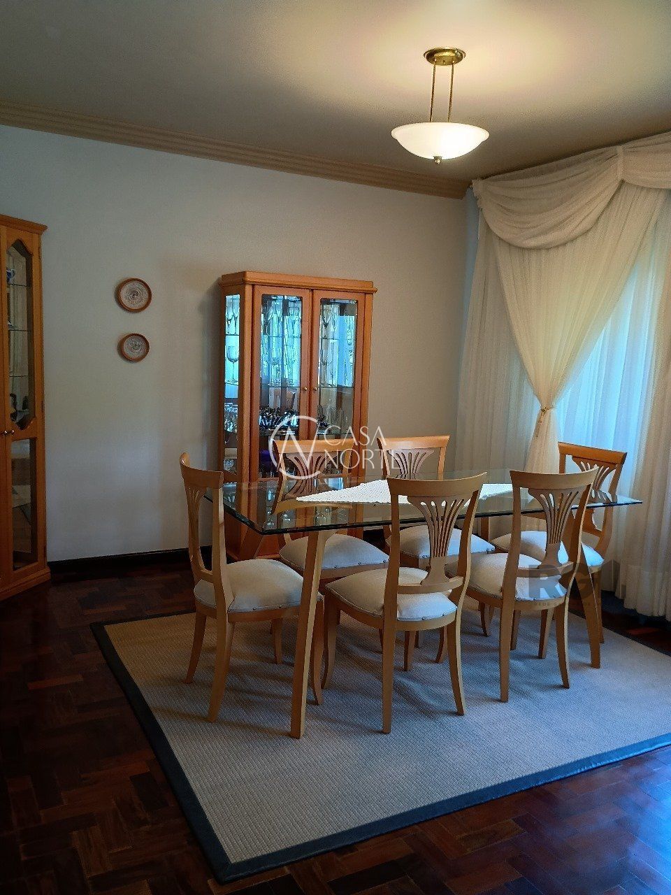 Salas de Jantar e Estar: Ambientes integrados, com uma lareira aconchegante na sala de estar, perfeitos para momentos de relaxamento e convivência.