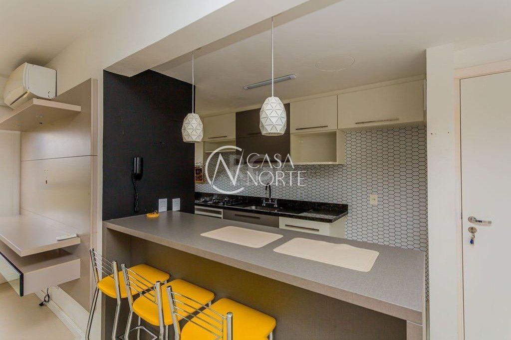 Impecável apartamento de 54m² semi mobiliado, com 02 dormitórios, banheiro social com ventilação natural, amplo living para 02 ambientes, cozinha americana planejada e com churrasqueira, área de serviço integrada e 01 vaga de garagem. Andar alto, com ótima iluminação, ventilação e linda vista panorâmica! O condominio conta com infraestrutura de lazer completa, dispondo de piscinas, espaço fitness, playground, espaço gourmet, salão de festas e quiosque. Conta também com portaria 24h, elevador e gás central.