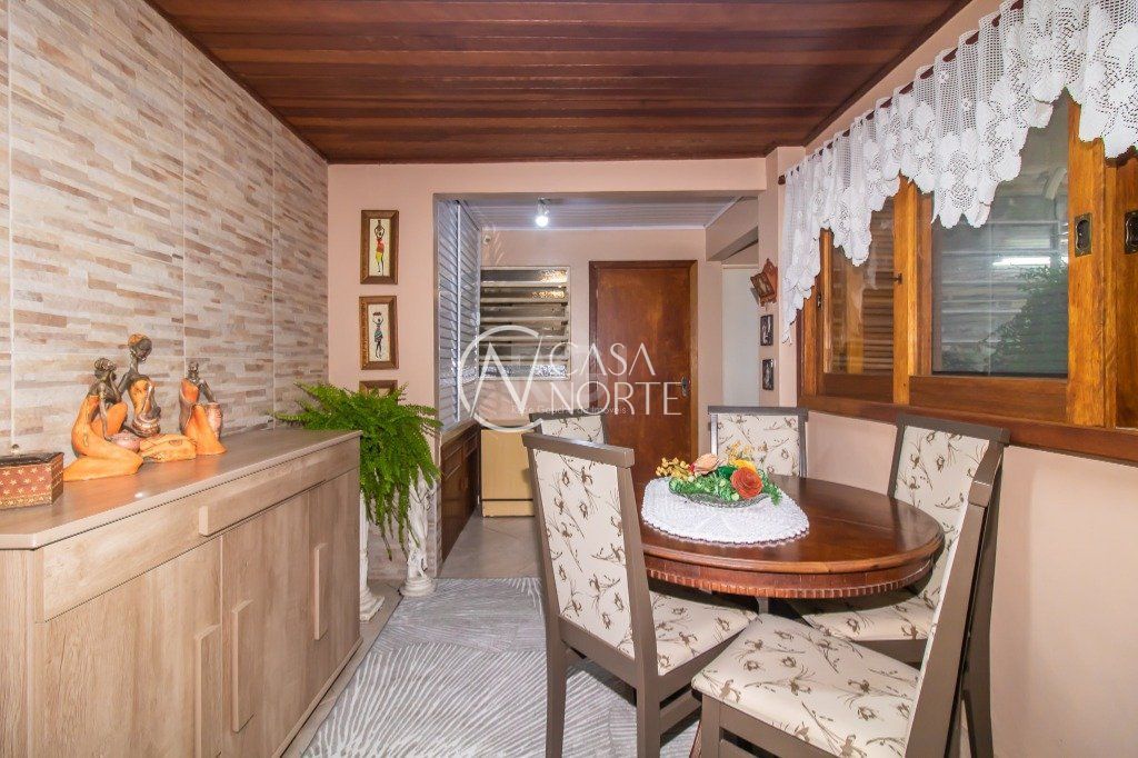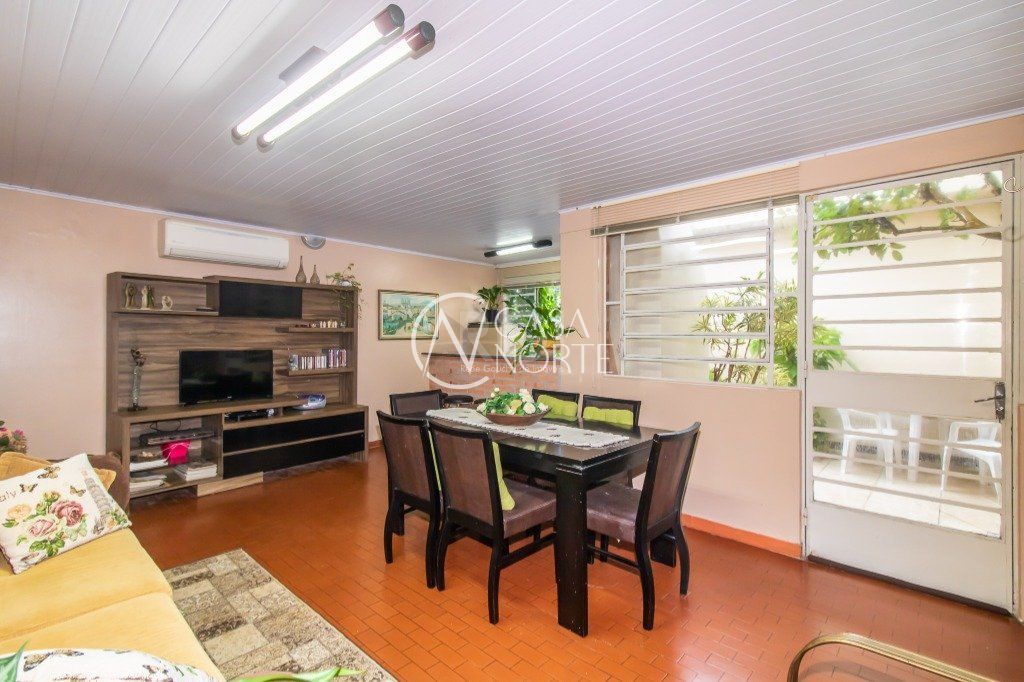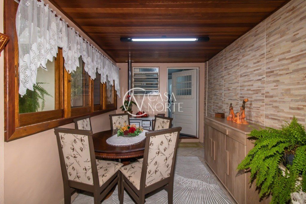 Excelente casa de 289 m² de área privativa, com 3 dormitórios, sendo 1 suíte, banheiro social, 4 salas, sendo uma com lareira, espaço gourmet com churrasqueira, cozinha, banheiro auxiliar, área de serviço e depósito. Pátio amplo com árvore frutífera, horta e parreira de uva e vaga de garagem para 4 carros. Conta com sistema de monitoramento com acesso remoto por aplicativo e sensores de presença com central de alarme. Ótima orientação solar, possuindo cômodos bem iluminados e ventilados.