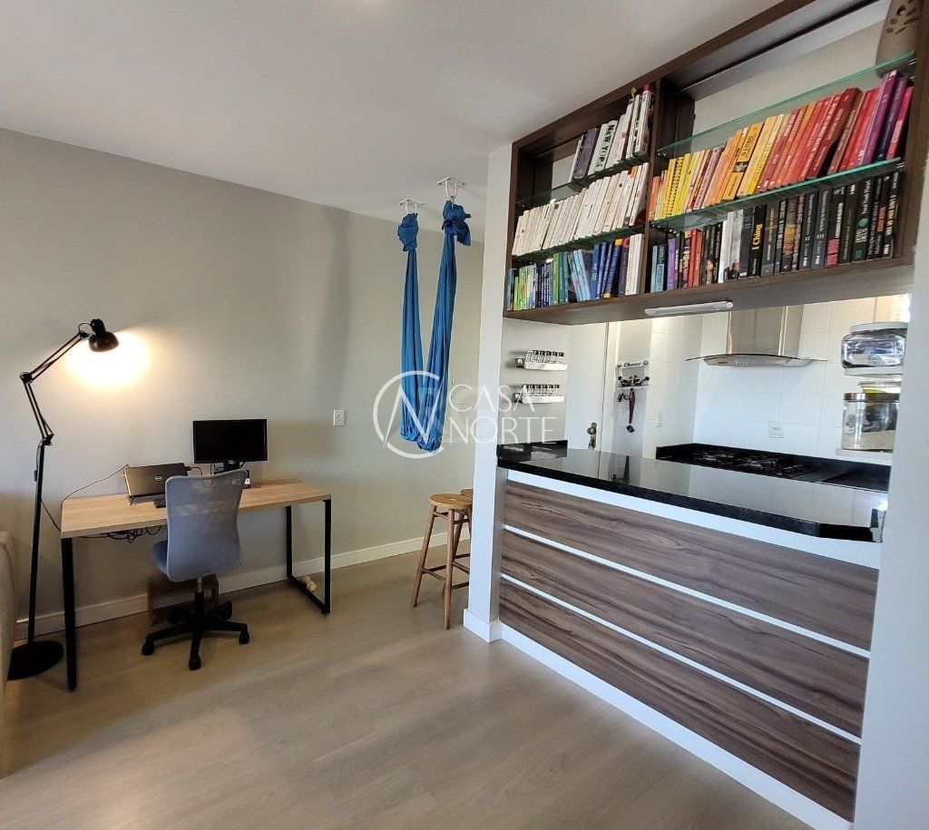 Apartamento 1 dormitório, todo decorado, sala ampla (ficam 2 splits, coifa, cooktop, forno de microondas, forno elétrico, prateleiras e varal), sacada, dormitório, banheiro social, cozinha americana e área de serviço separada, 1 vaga escriturada. Próximo a Wenceslau Escobar, com comércio, transportes e bancos.