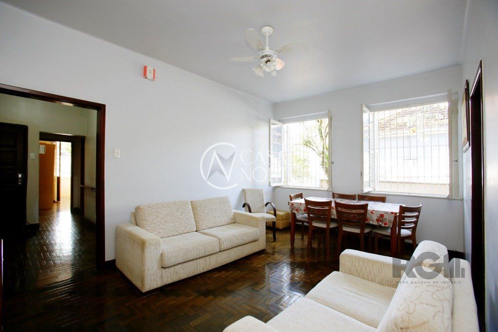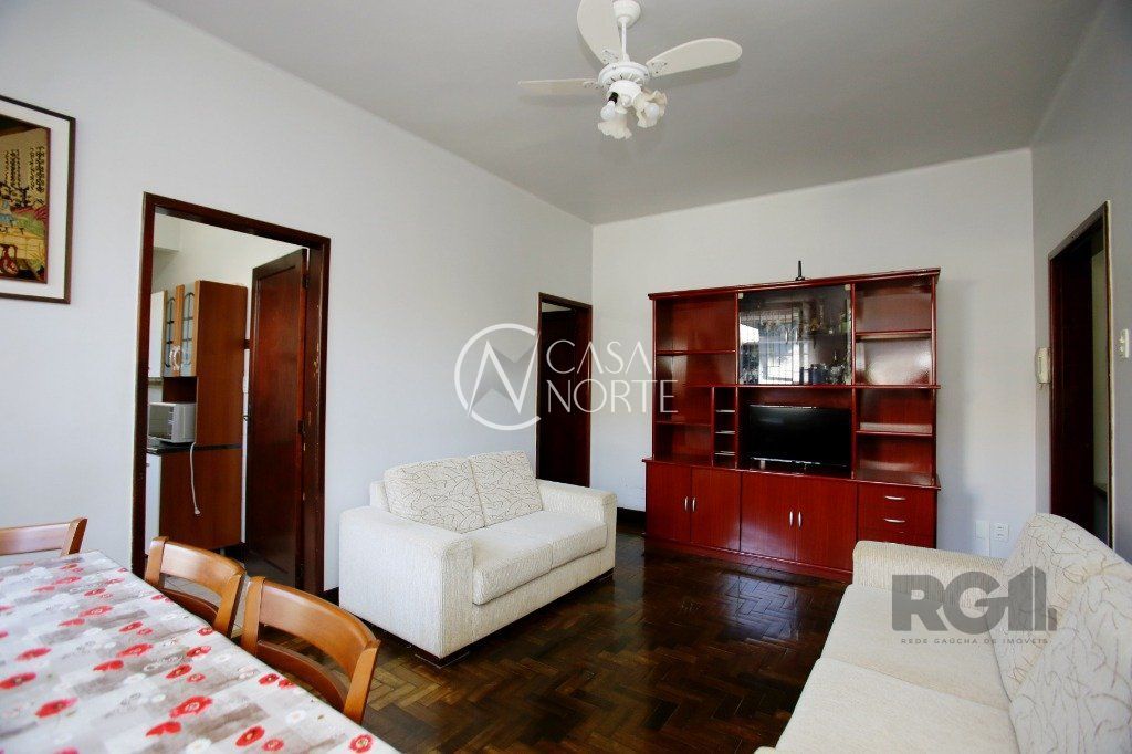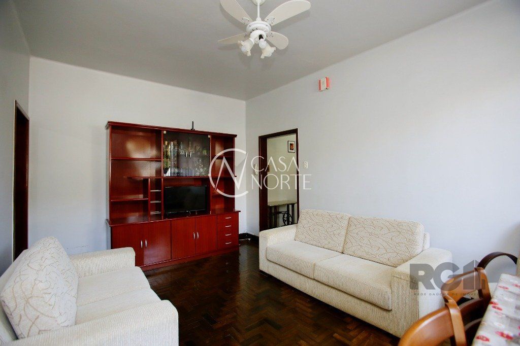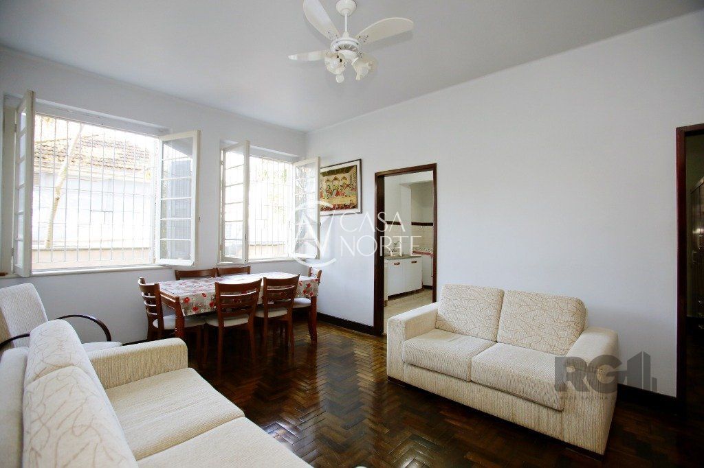 Sala ampla com piso em parquet, banheiro grande, cozinha com área de serviço separada.