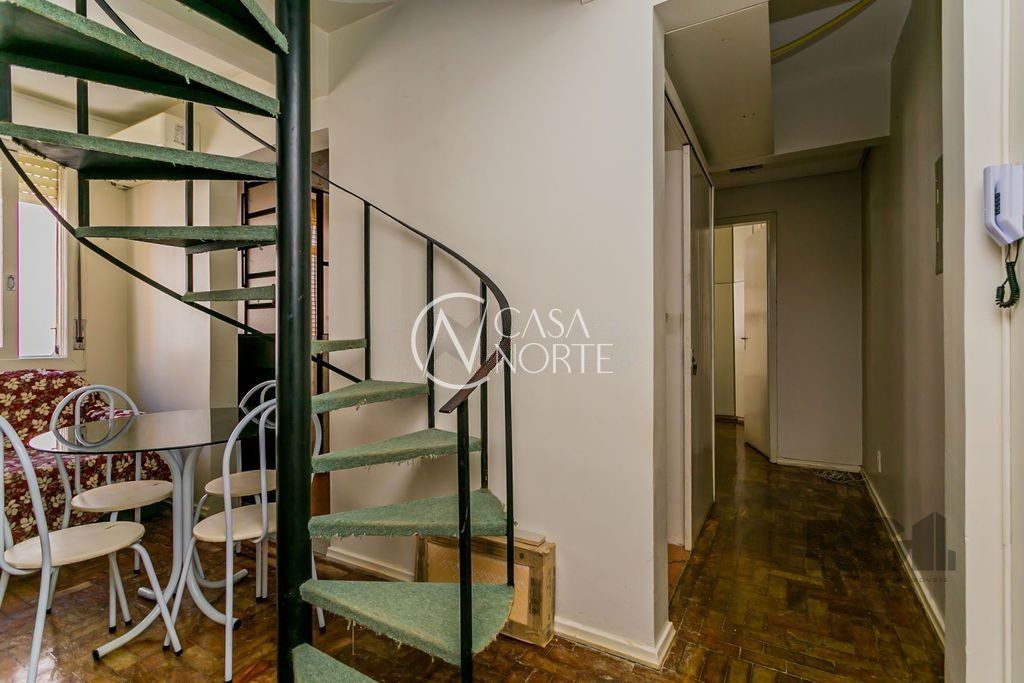Ótima cobertura duplex de 89m² no Centro Histórico! O andar inferior conta com sala de estar, cozinha, área de serviço, 1 dormitório e banheiro social. O andar superior é composto por sala de estar, 1 dormitório, banheiro social, cozinha com churrasqueira e área de serviço. Possui cômodos bem arejados e com boa iluminação. O condomínio conta com porteiro eletrônico e elevador.