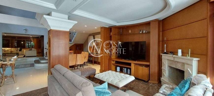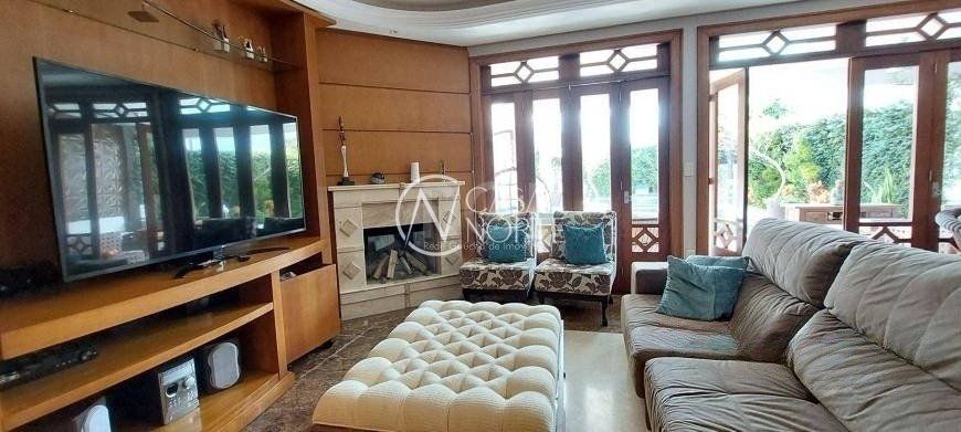 Belíssima residência de 386m² (área privativa) mobiliada, composta por 4 dormitórios, sendo 3 suítes (1 suíte máster com closet, sacada e banheira de hidromassagem), hall de entrada, gabinete, living para 03 ambientes com pé direito alto, 02 lareiras, lavabo, bar, revestimentos internos com madeiramento nobre, cozinha montada, jardim de inverno, lavanderia, 04 vagas de garagem sendo 02 cobertas, pátio com piscina, espaço gourmet com churrasqueira e banheiro auxiliar. Excelente localização, a poucos minutos do calçadão de Ipanema.