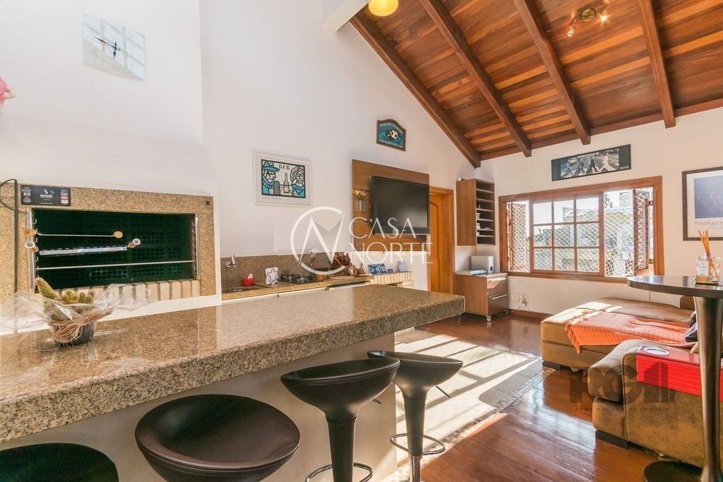 vende cobertura mobiliada com 164m², 2 dormitórios com 2 vagas no bairro Petrópolis. No primeiro pavimento possui um amplo living para 2 ambientes com sacada, espaço home-office, 2 dormitórios, banheiro social, cozinha com passa pratos, área de serviço independente e despensa. No segundo pavimento possui um espaço gourmet com churrasqueira, estar com lareira, banheiro social, terraço com deck e piscina.. A dependência foi integrada ao living e o banheiro auxiliar transformado em despensa. O imóvel possui peças amplas e bem ensolaradas, todo mobiliado! As duas vagas são cobertas e individuais. O condomínio é pequeno e possui salão de festas com churrasqueira, elevador, interfone.