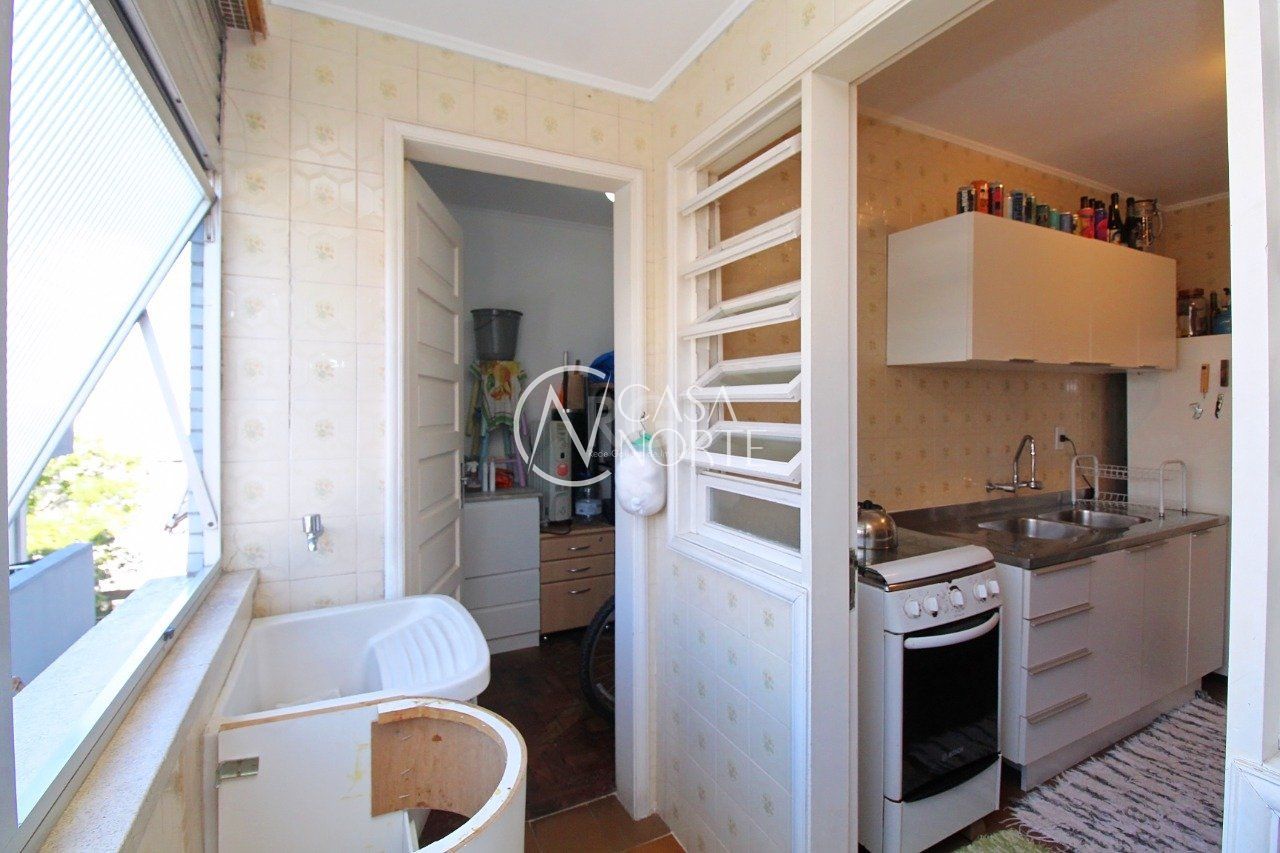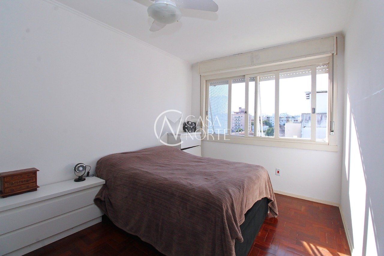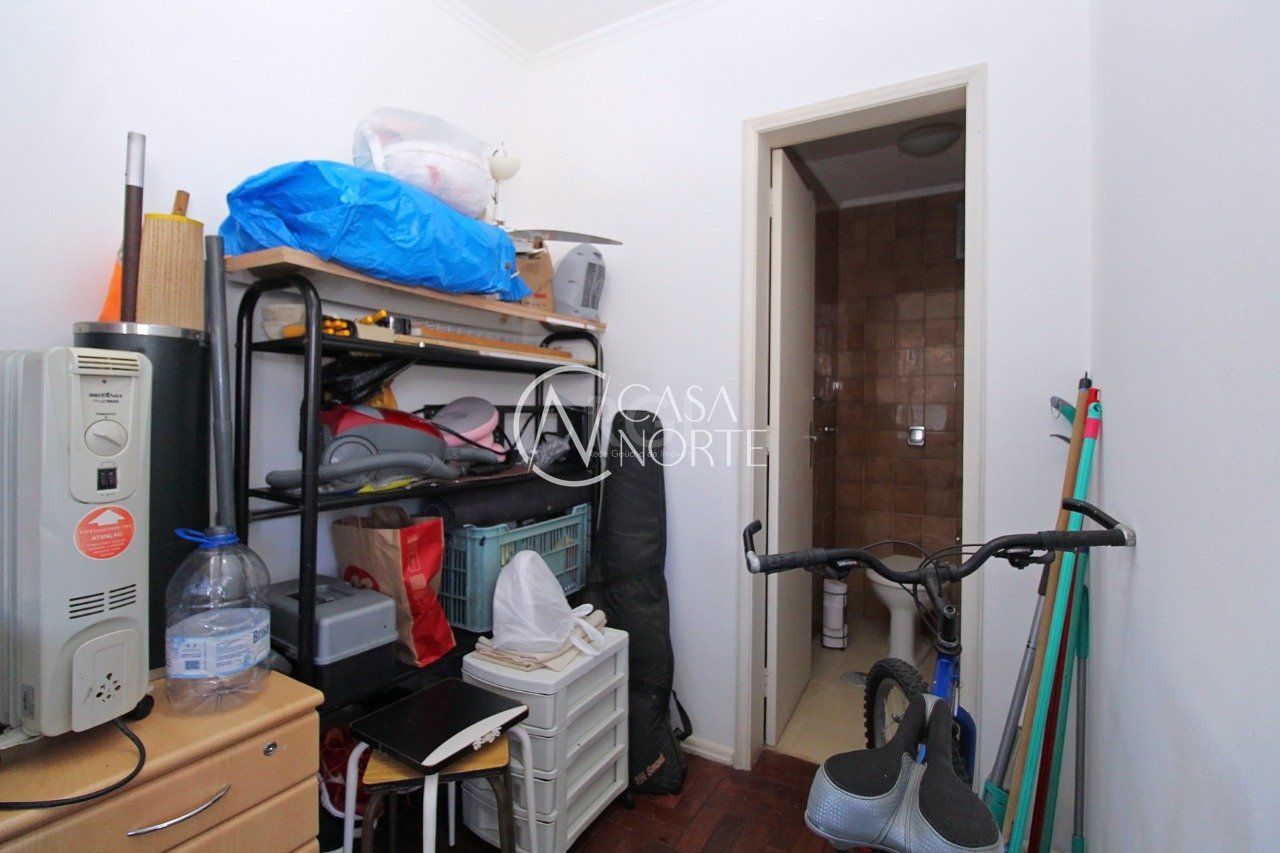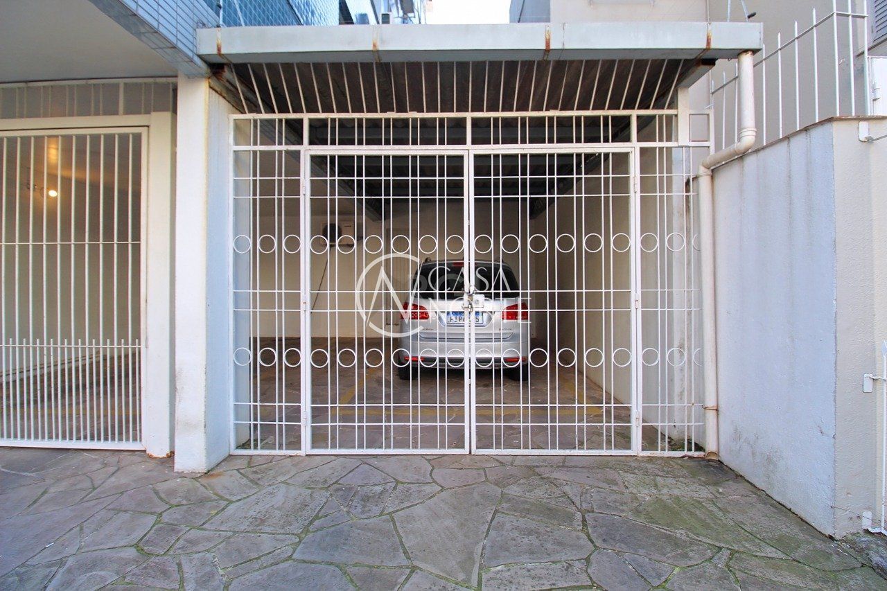 Apartamento de dois dormitórios, dependência de empregada e garagem no bairro Menino Deus em Porto Alegre.