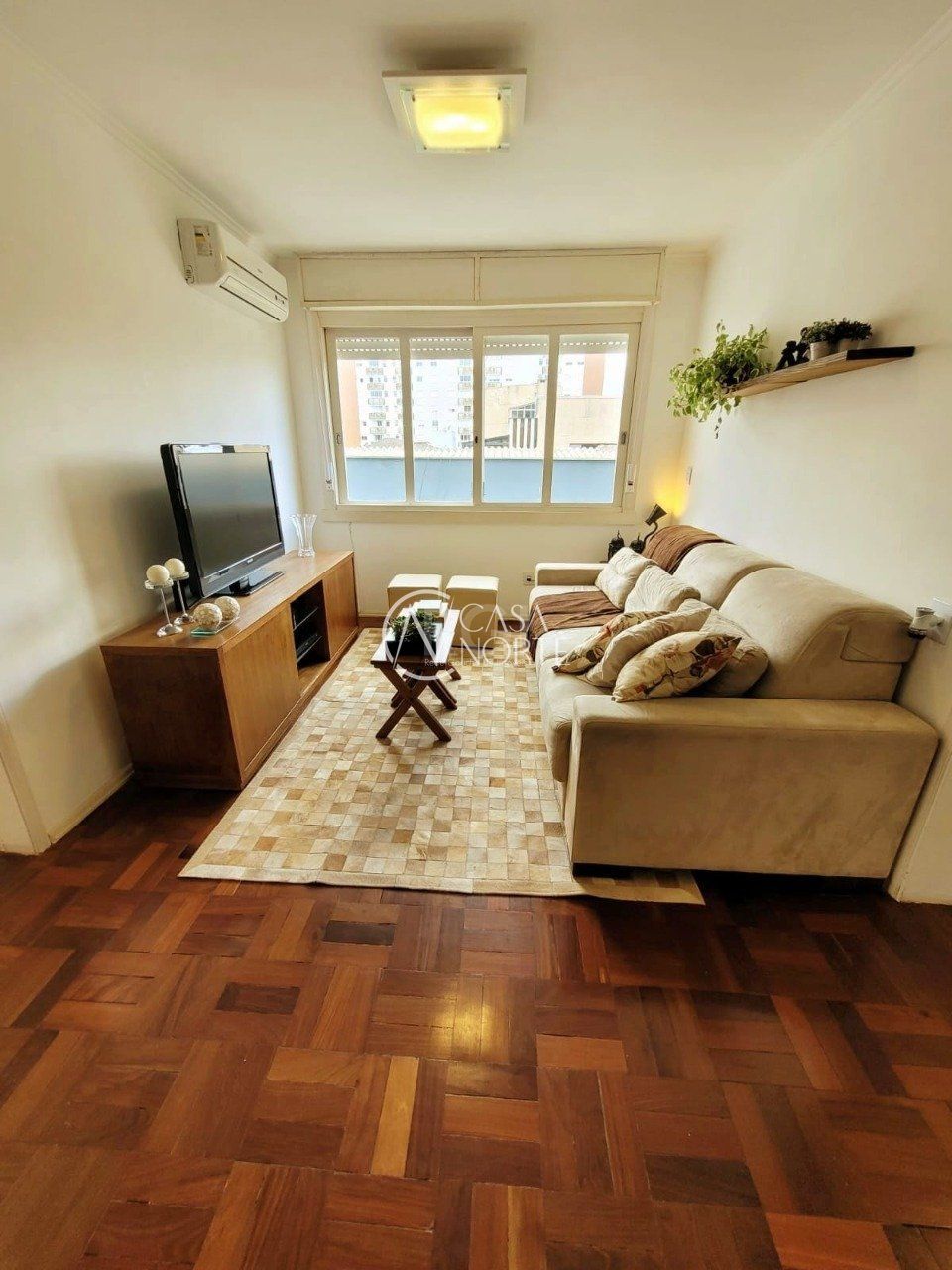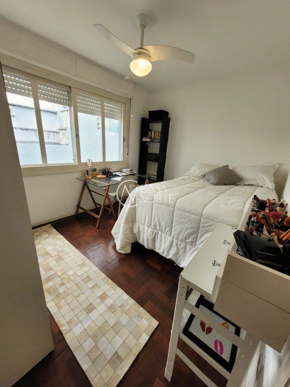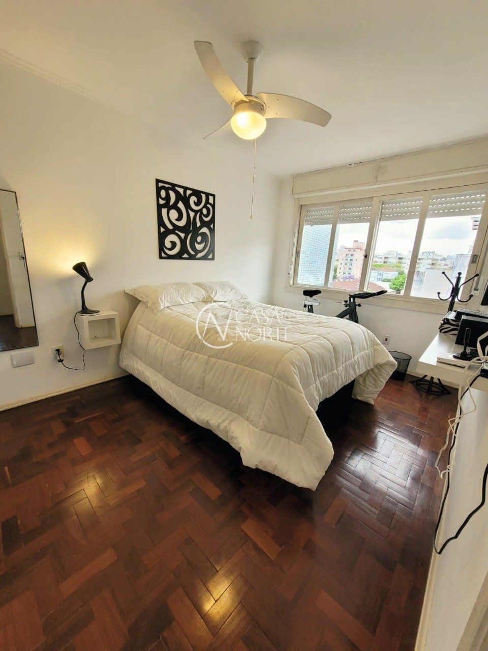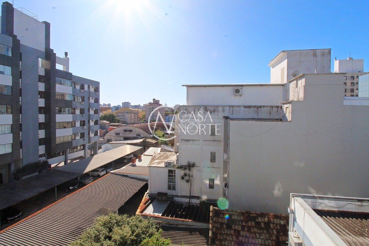 Apartamento de dois dormitórios, dependência de empregada e garagem no bairro Menino Deus em Porto Alegre.