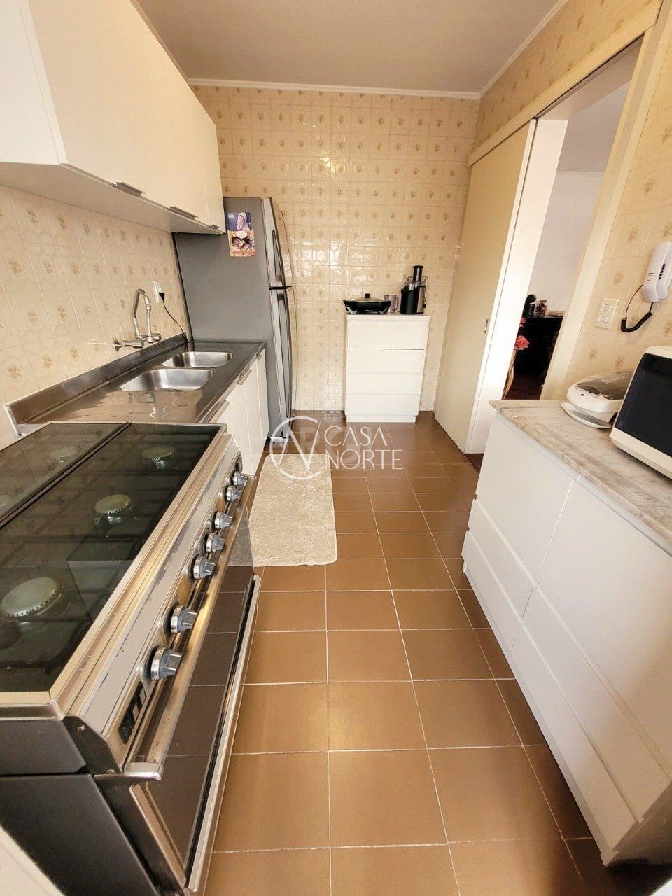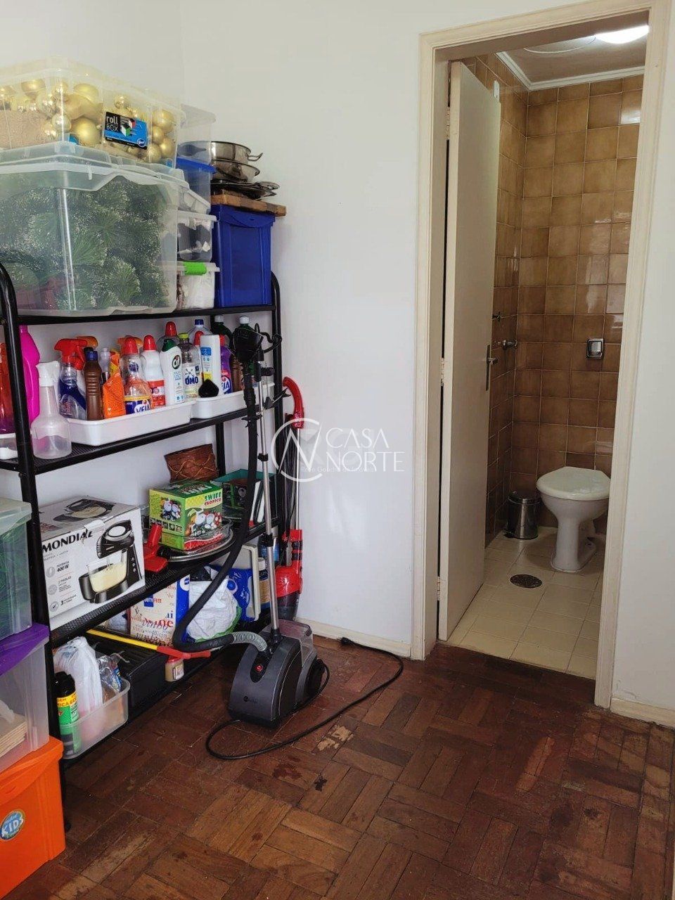 Living com dois ambientes, banheiro social, cozinha, área de serviço e dependência de empregada com banheiro auxiliar.