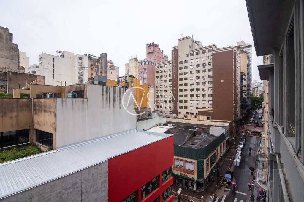 Sala comercial à venda em Porto Alegre no Centro histórico, com 99m² privativos, no 5º andar, de frente pra vigário, dois salões, dois banheiros, cozinha e sacada com vista para igreja do Rosario. Ótima localização de esquina com a rua dos Andradas, em região de grande variedade de comércio local, além de acesso aos meios de transportes coletivos locais.