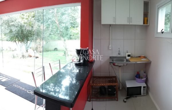 03 dormitórios, living 02 ambientes com lareira, banheiro, cozinha, jardim de inverno, chuurrasqueira, área de serviço, garagem para 01 carro coberta e na parte externa da casa 14 carros. Escritorio na frente com living, banheiro.