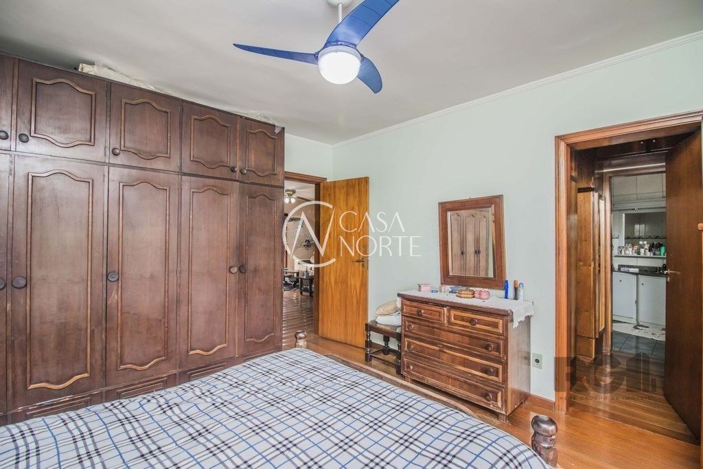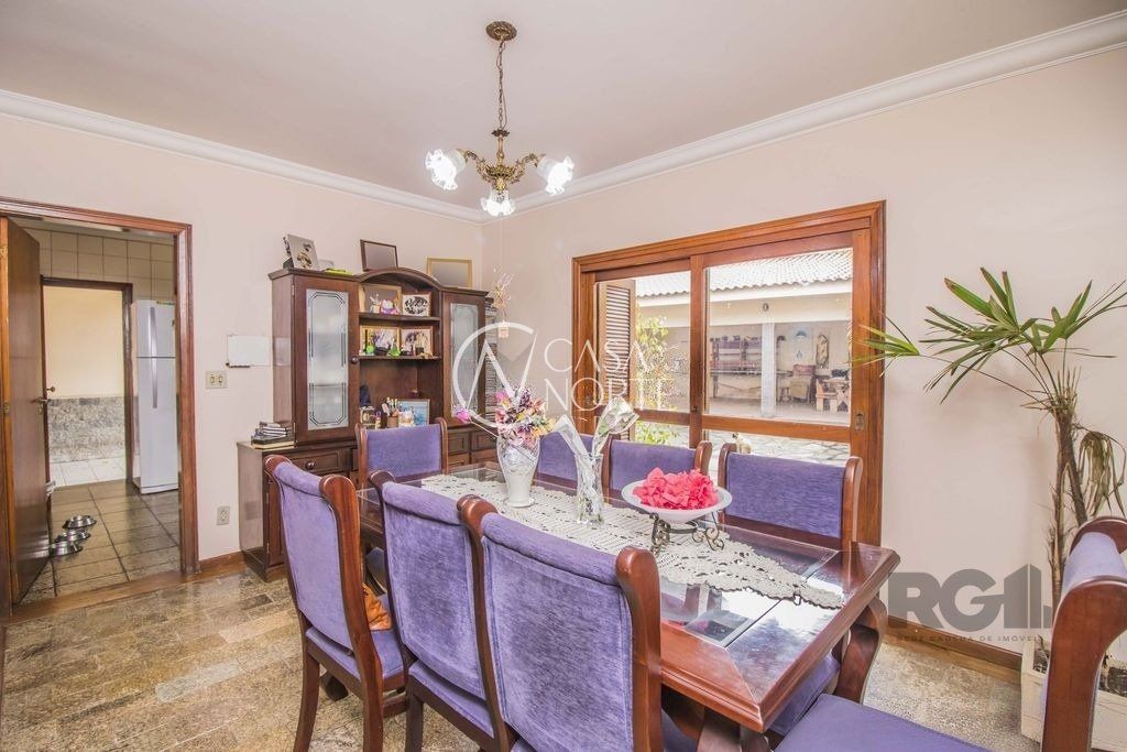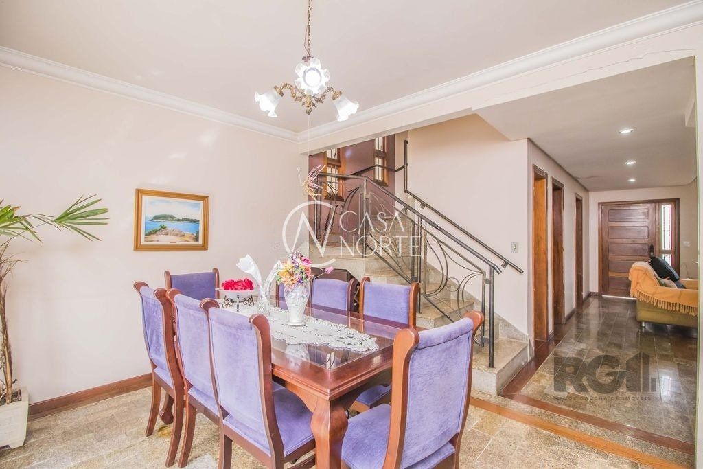 Excelente casa de 329m² privativos distribuídos em 2 pavimentos, sendo o primeiro composto por ampla sala de estar com lareira e bar, gabinete, sala de jantar, lavabo, cozinha e dispensa. O 2º pavimento conta com banheiro social, 4 dormitórios sendo 1 suíte com sacada e closet e 1 atualmente transformado em sala de TV com sacada. Possui garagem fechada para 3 carros, pátio, área de lazer com churrasqueira, lavanderia e banheiro. Possui cômodos amplos, com ótima iluminação e ventilação.