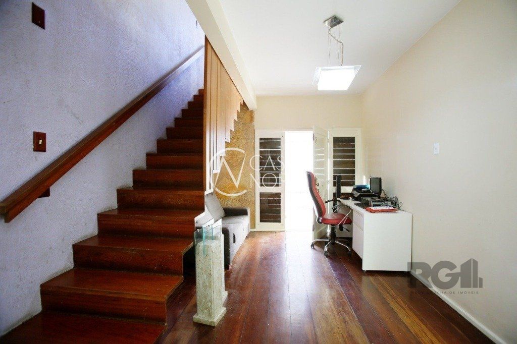 Residência de 235 metros quadrados privativos, composta por 4 quartos, incluindo uma suíte. Na parte térrea, desfrute de uma acolhedora e espaçosa sala equipada com lareira e lavabo, integrada a uma cozinha mobiliada que apresenta churrasqueira e área de serviço. Completa-se com um pequeno pátio nos fundos e um quarto adicional na parte térrea, versátil o suficiente para ser usado como gabinete.