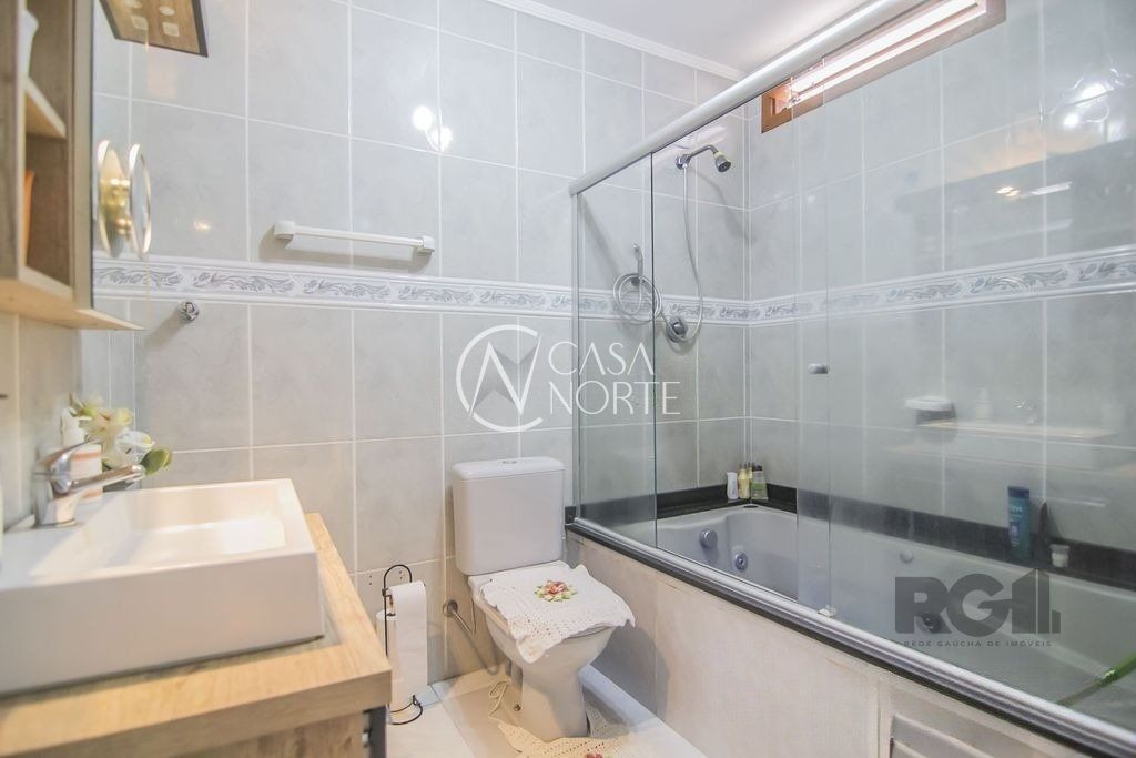 Excelente casa de 115m² composta por amplo living para dois ambientes com lareira, 3 dormitórios sendo 1 suíte com banheira de hidromassagem, copa/cozinha com churrasqueira, quintal, pátio, salão de festas com lavanderia e banheiro auxiliar. Possui vaga de garagem para 3 carros. Ótimo estado de conservação, com acabamento em gesso, água quente e possibilidade de um segundo piso. Bem iluminada e ventilada.