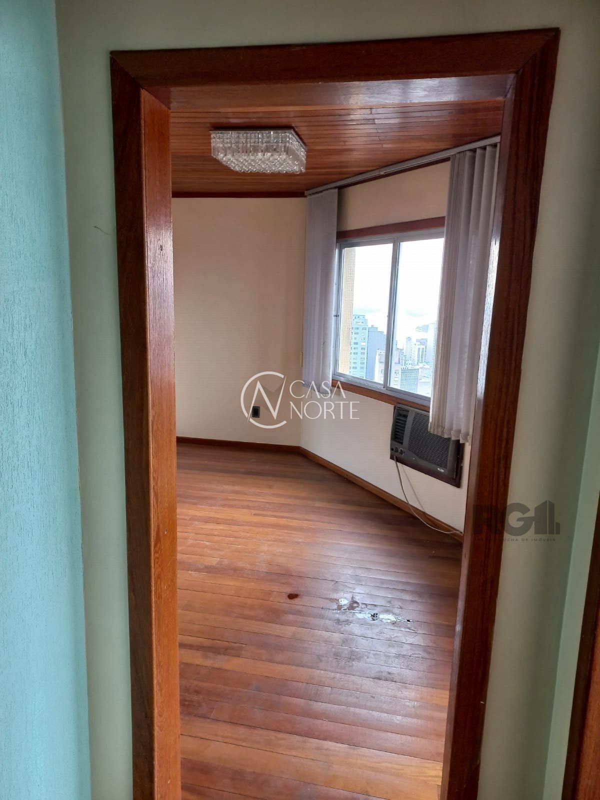 Apartamento de 2 dormitórios no centro de Porto alegre , bem ventilado e iluminado pelo sol da manhã, de frente, com uma linda vista de andar alto, conta também com sala espaçosa, banheiro social e cozinha .Todo em piso de tabuão, ar condicionado de janela.