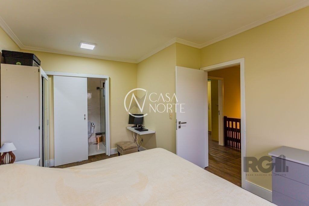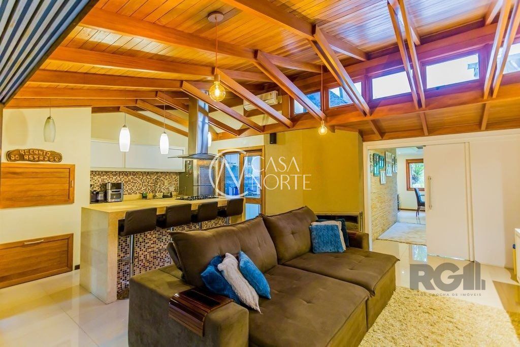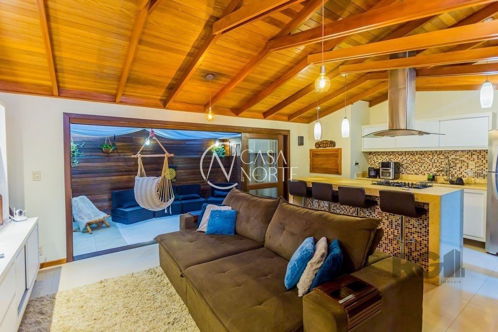 Excelente casa em condomínio fechado no bairro Espírito Santo! São 155m² privativos distribuídos em amplo living para dois ambientes, lavabo, cozinha, despensa, espaçosa sala de lazer com lareira e espaço gourmet com churrasqueira, além de uma aconchegante área coberta com abertura automatizada. O 2º pavimento é composto por 3 dormitórios sendo 1 suíte e 1 banheiro social com ventilação natural. Possui planta arquitetônica diferenciada, cômodos bem iluminados e ventilados. Conta com pátio na frente da casa e vaga de garagem para até 4 carros.