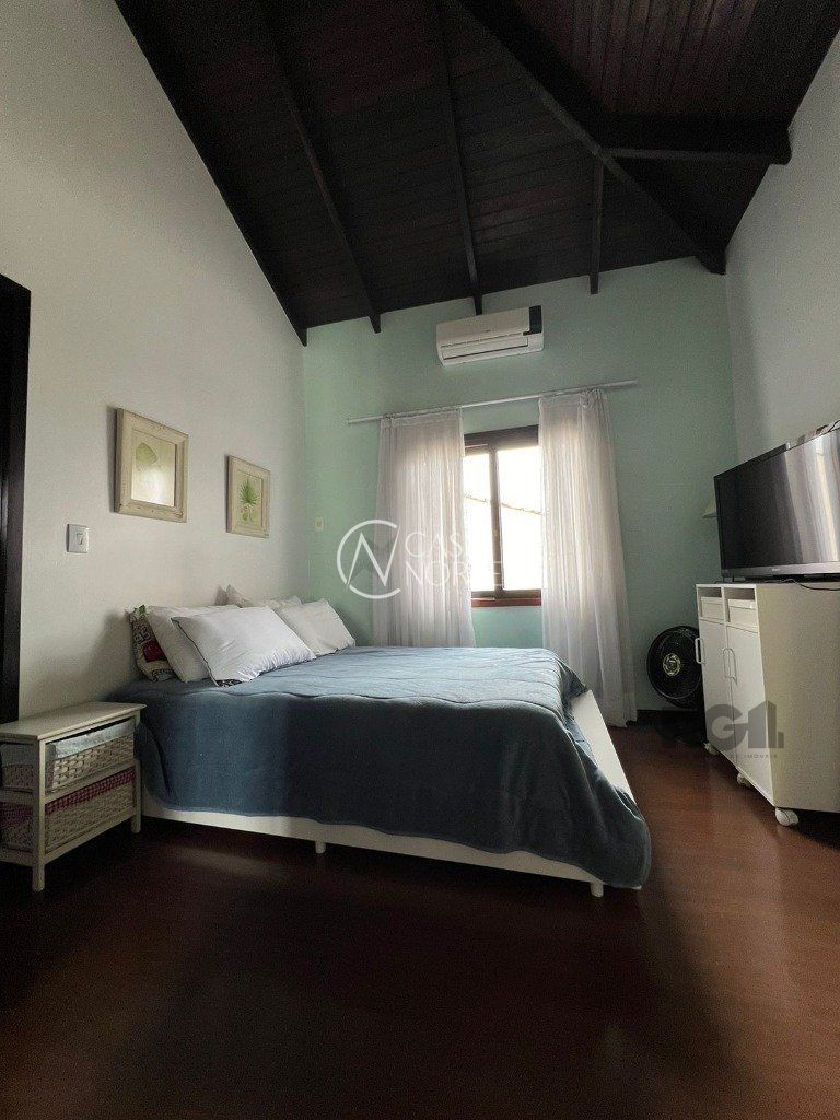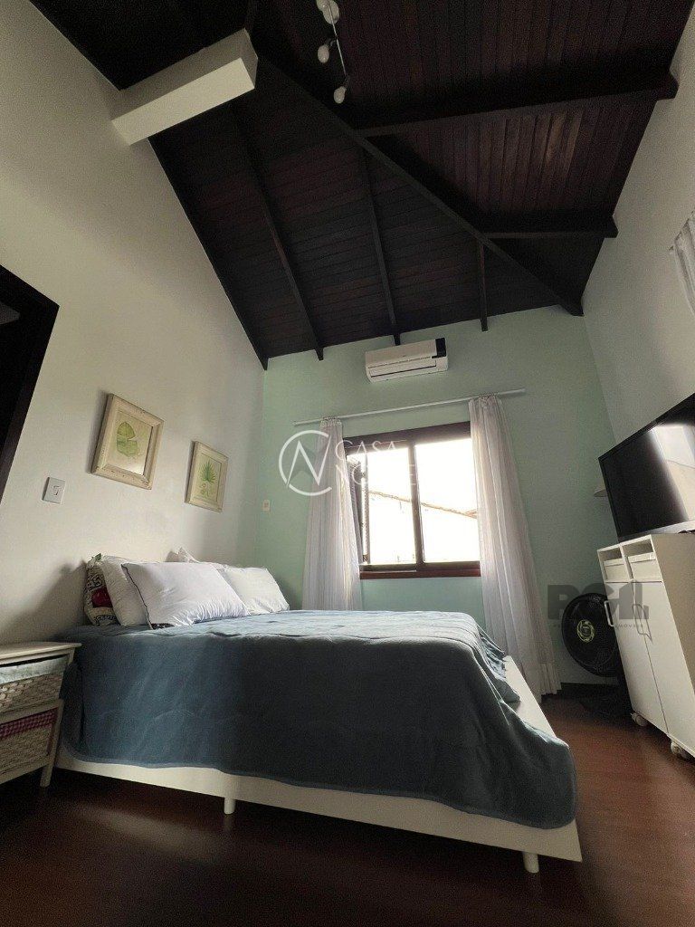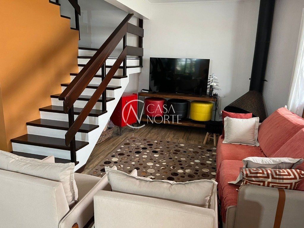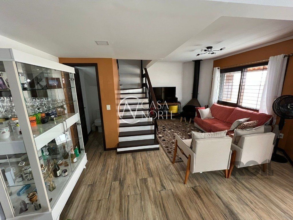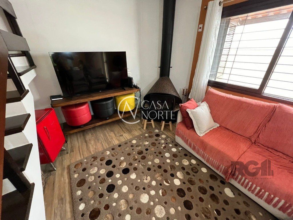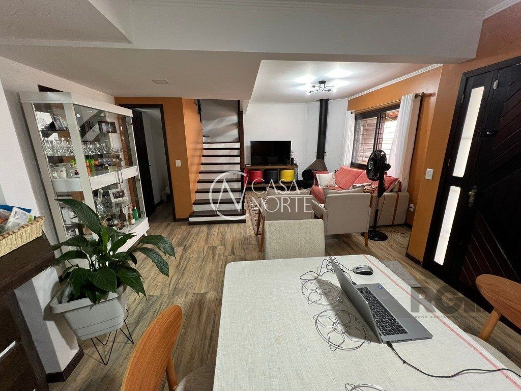 ótima casa em condominio no bairro Teresopolis com lareira, churrasqueira e sacada. Ficam os móveis fixos, quartos, cozinha, área de serviço, banheiros, Split de 9 mil btus um em cada quarto e um de 18 mil na sala, fogão cooktop, depurador também. Garagem de uma vaga escriturada com matrícula. Valor baixo de condomínio, apenas R$ 150,00 e somente 05 casas. Tem câmera de segurança instalada com acesso dos moradores pelo celular.